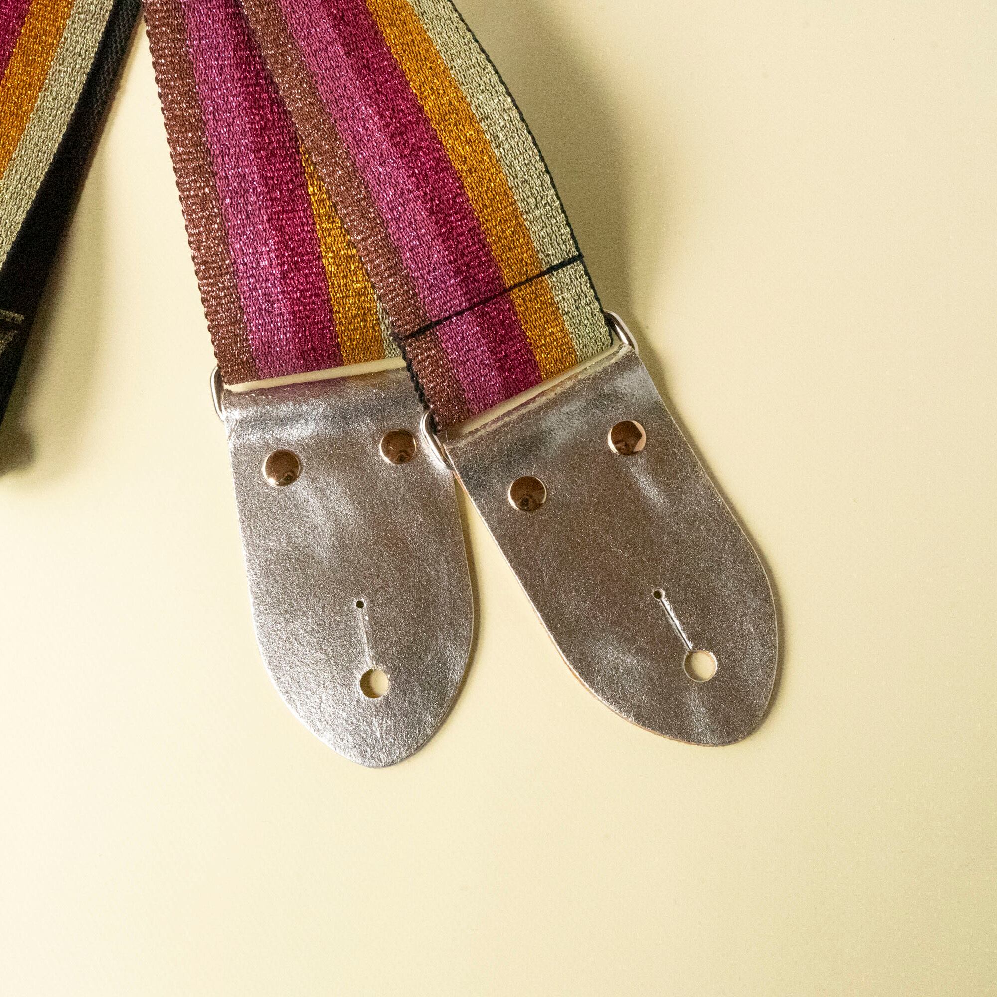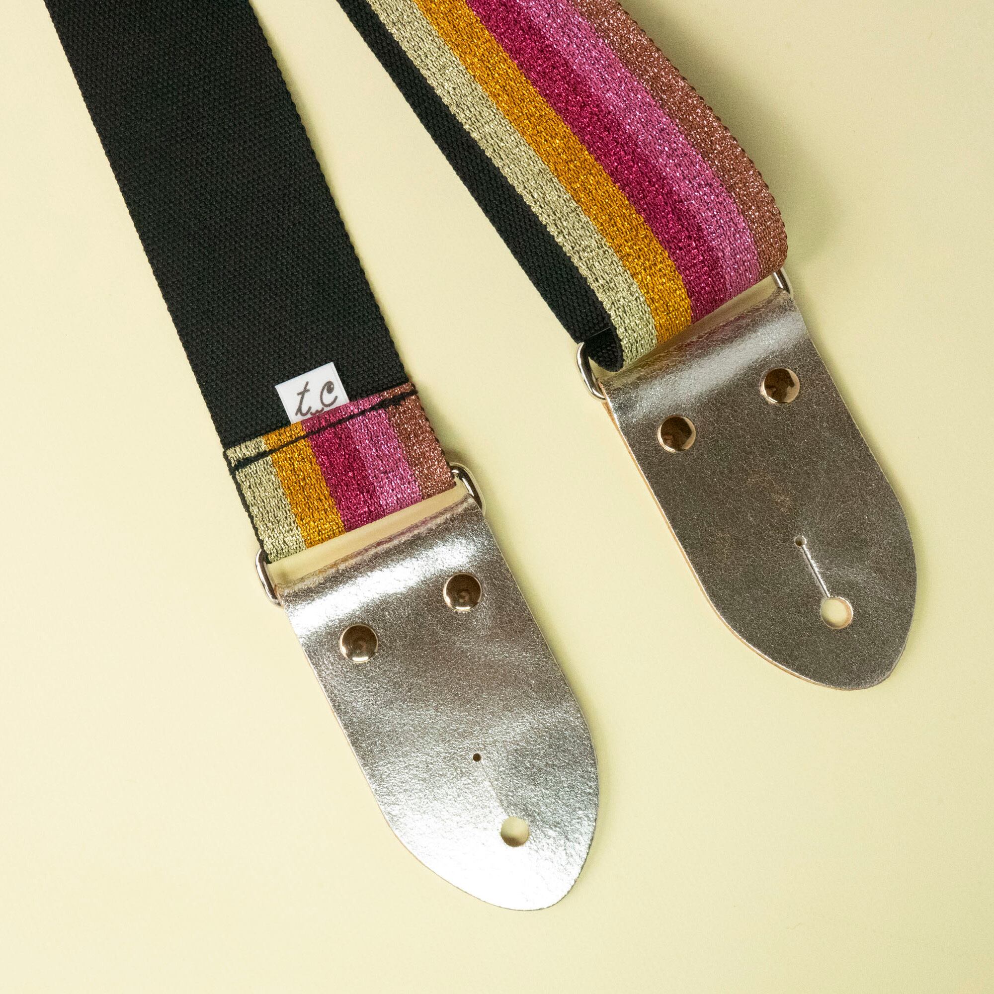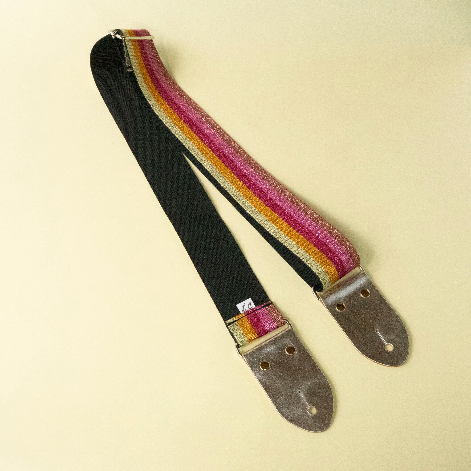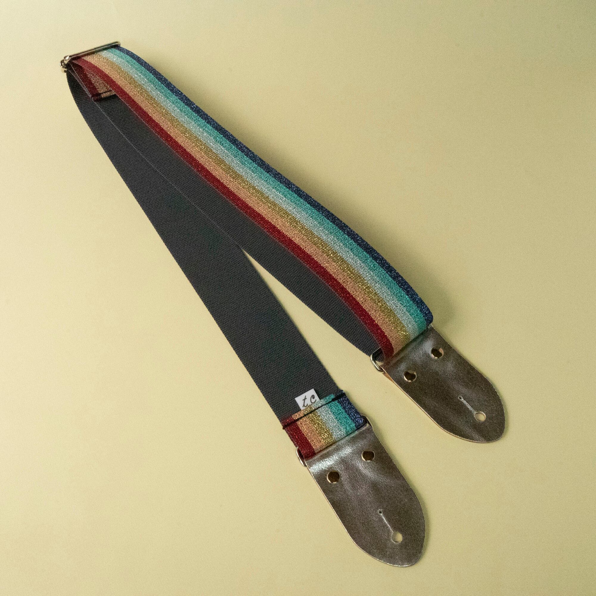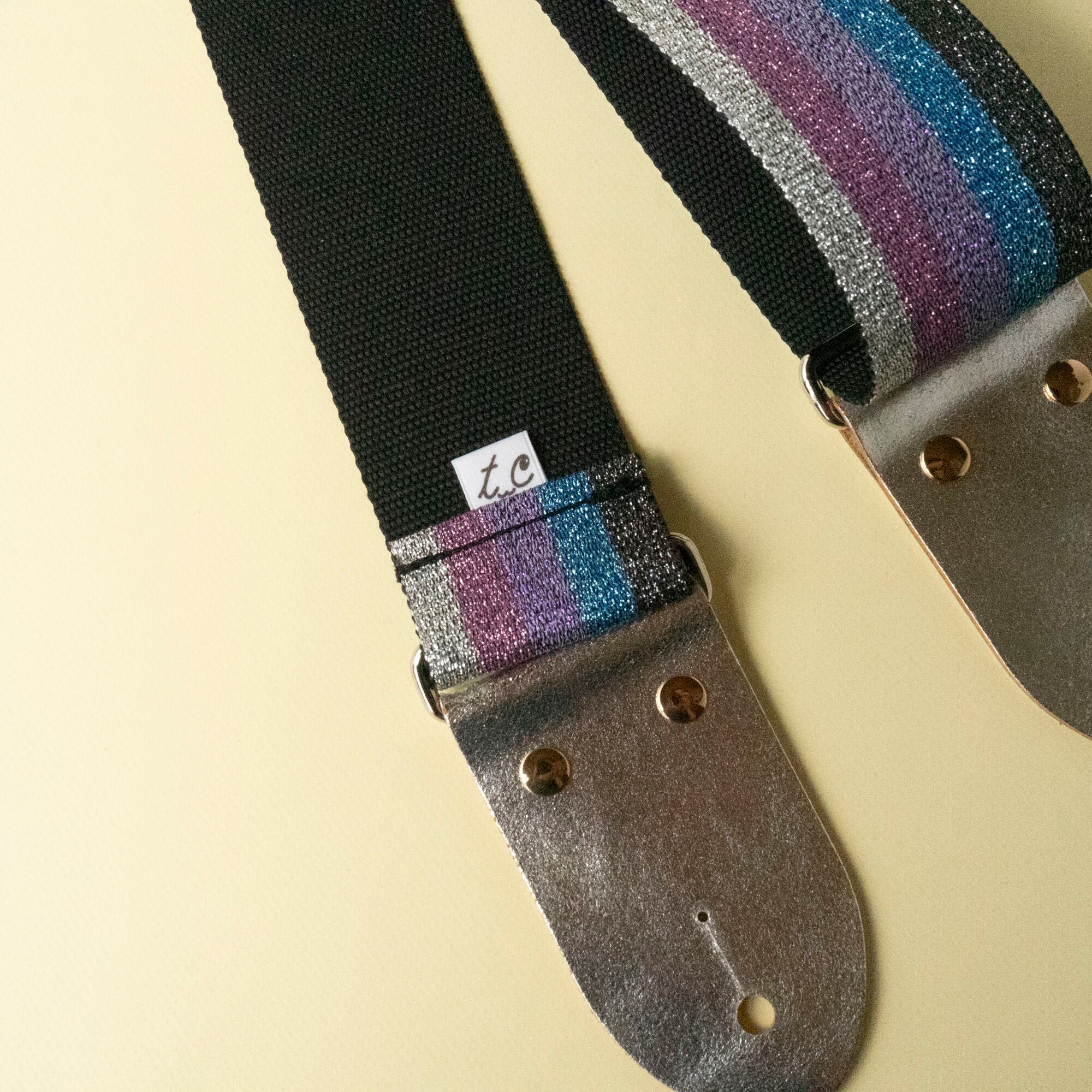虹色は6色、パープルとピンクは5色のラメラインが輝く外国製のPP(ポリプロピレン)ベルトで、従来のレインボー柄のように子どもっぽくなり過ぎず、クール系にもモード系にもハマるデザインです。