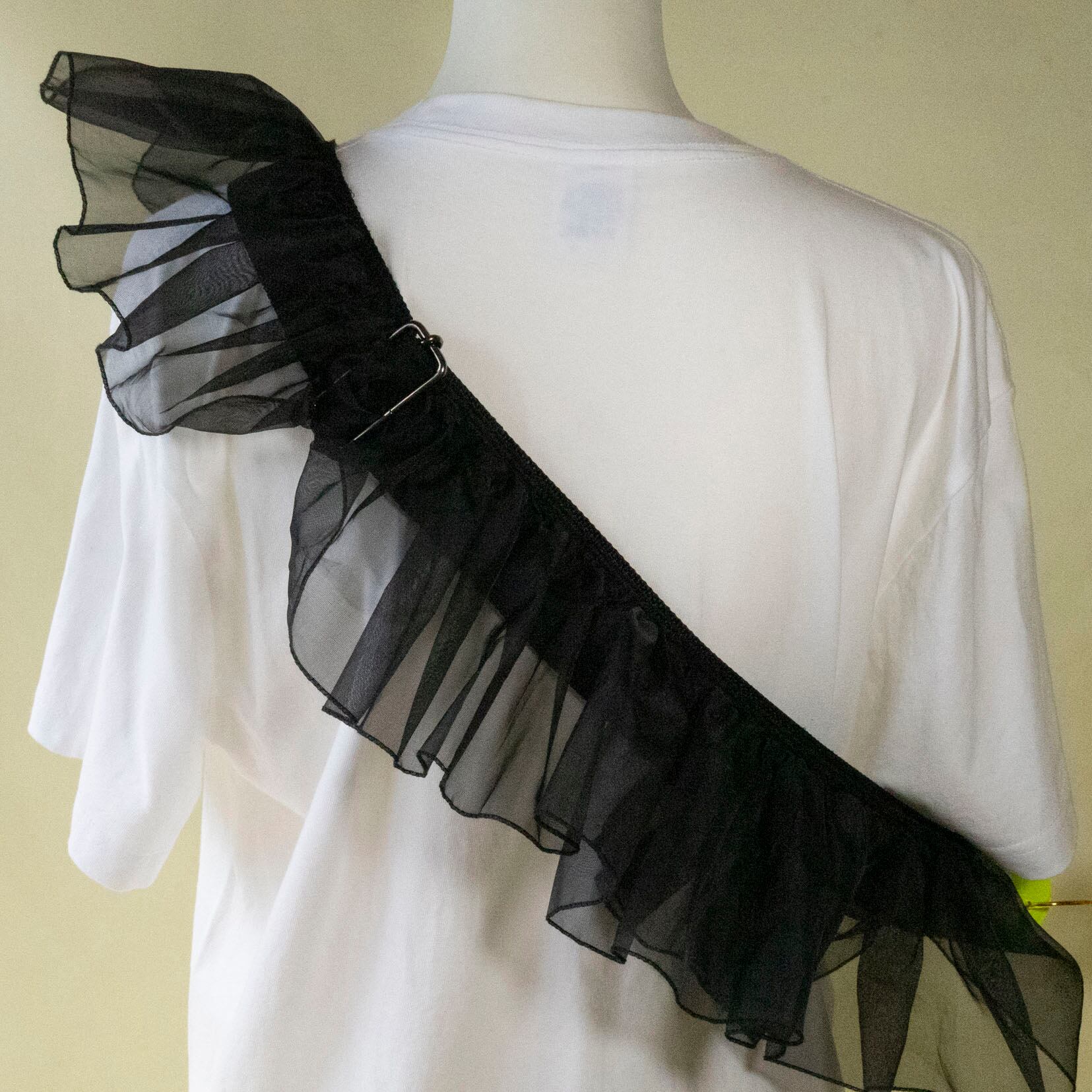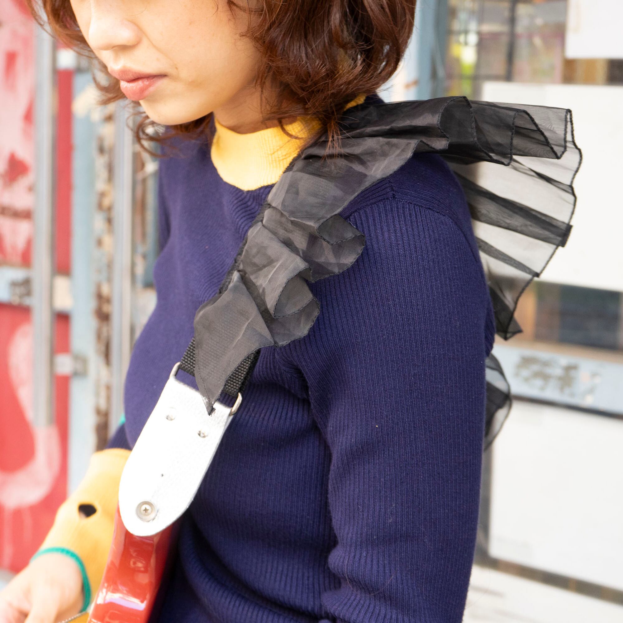 弦楽器を弾かない方には同デザインの「黒フリルショルダーストラップ」もございます。