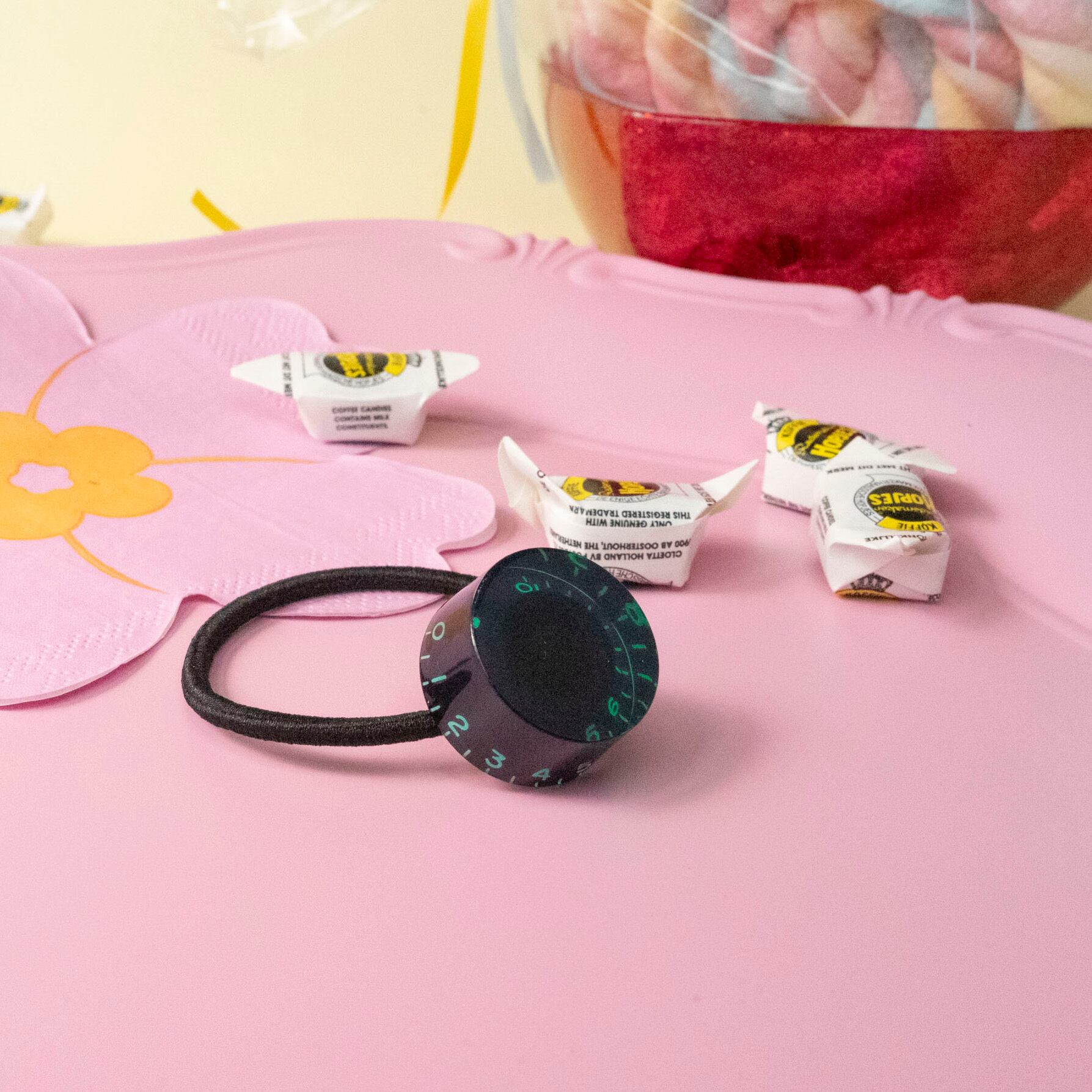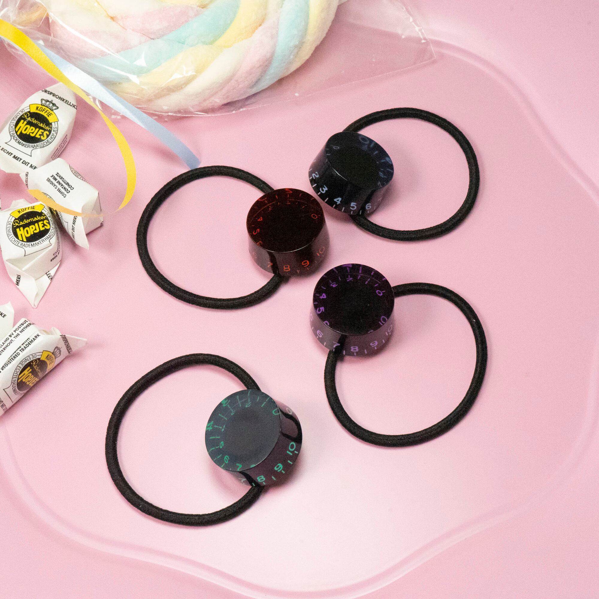 大好評の「ギターつまみシリーズ」に文字色カラフルなヘアゴムが登場!