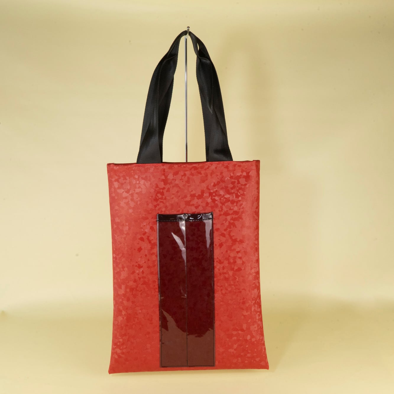 落ち着いた色調が魅力の赤いカモフラ柄は屋外テントにも使用される丈夫なターポリン素材、滑らかなシートベルトを幅広のまま持ち手に採用し、肩への負担も軽減してくれます。