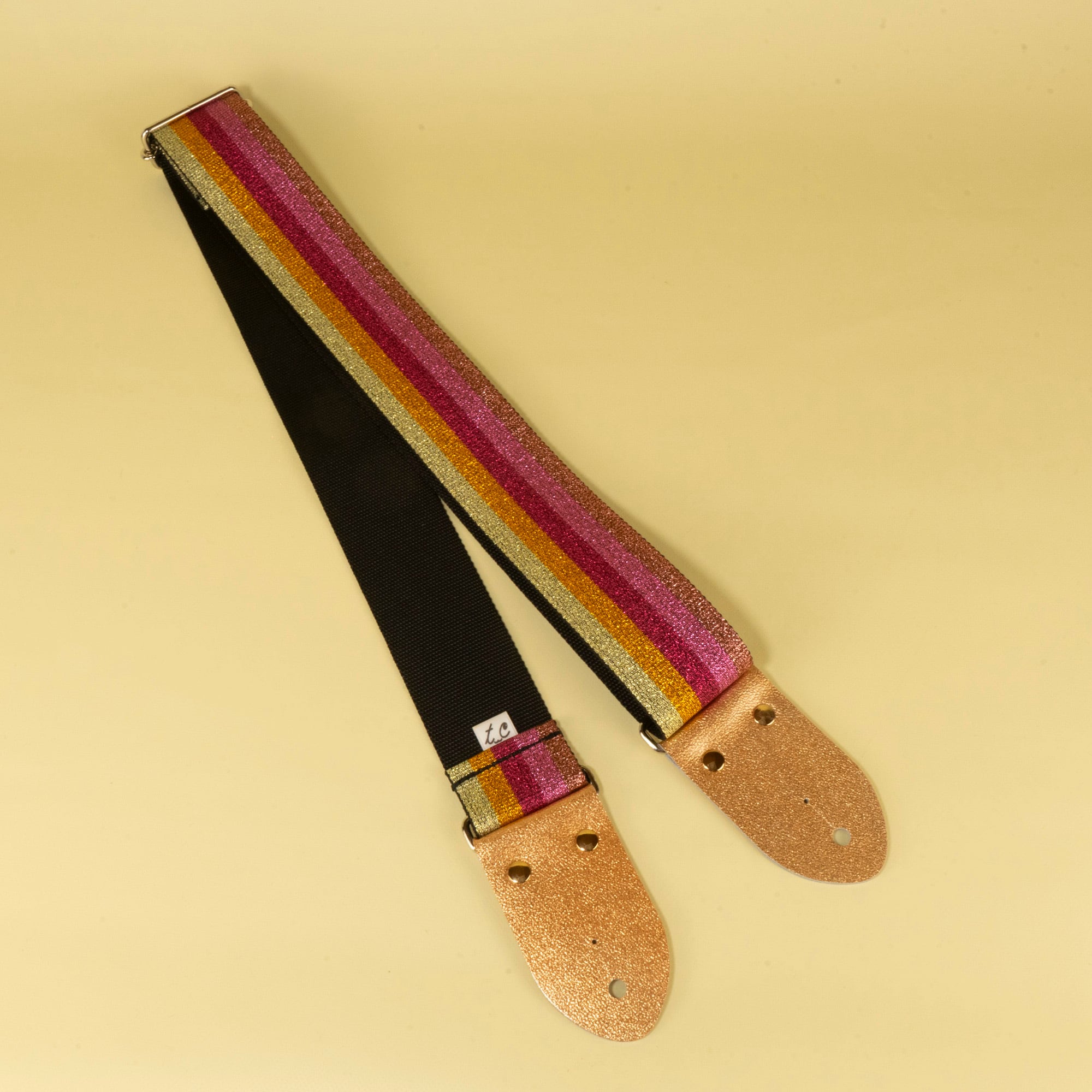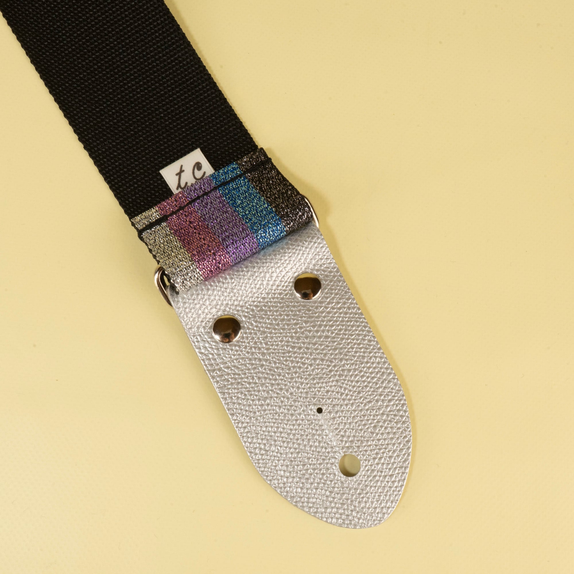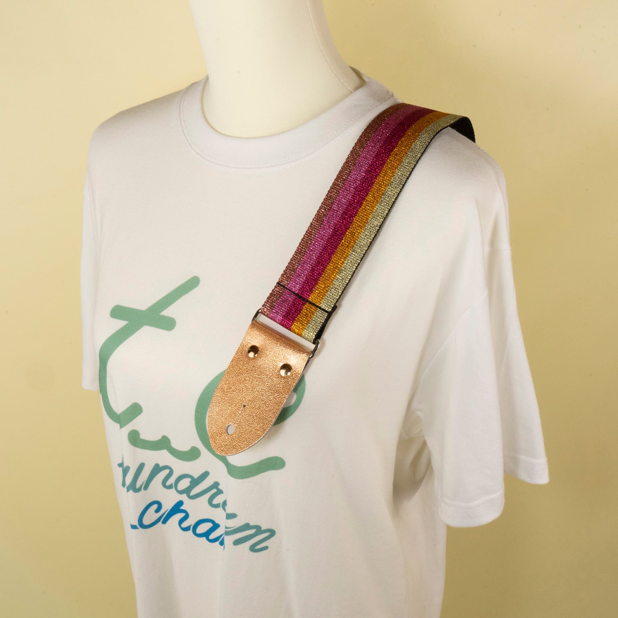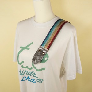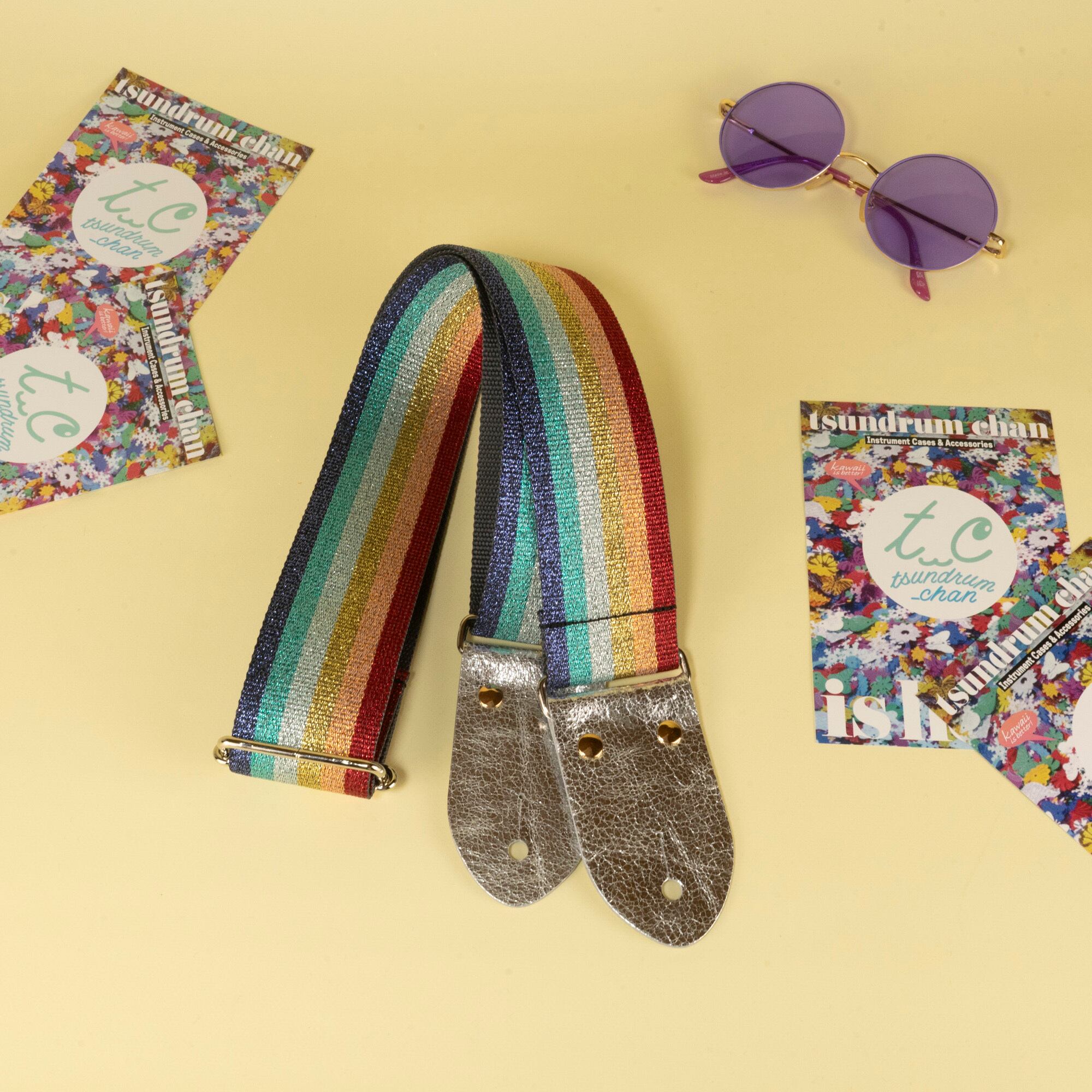 ストラップエンドは、虹色には従来のクラック加工が施された光り輝くシルバーの、使うほどにひび割れていく過程を楽しむスペシャルな質感。カシメを敢えてゴールドにすることで、キラキラ度120%です。パープルには細かいシボとキラ付きが控えめなシルバー革、ピンクにはピンクゴールドのグリッターエナメル革を使用しました。