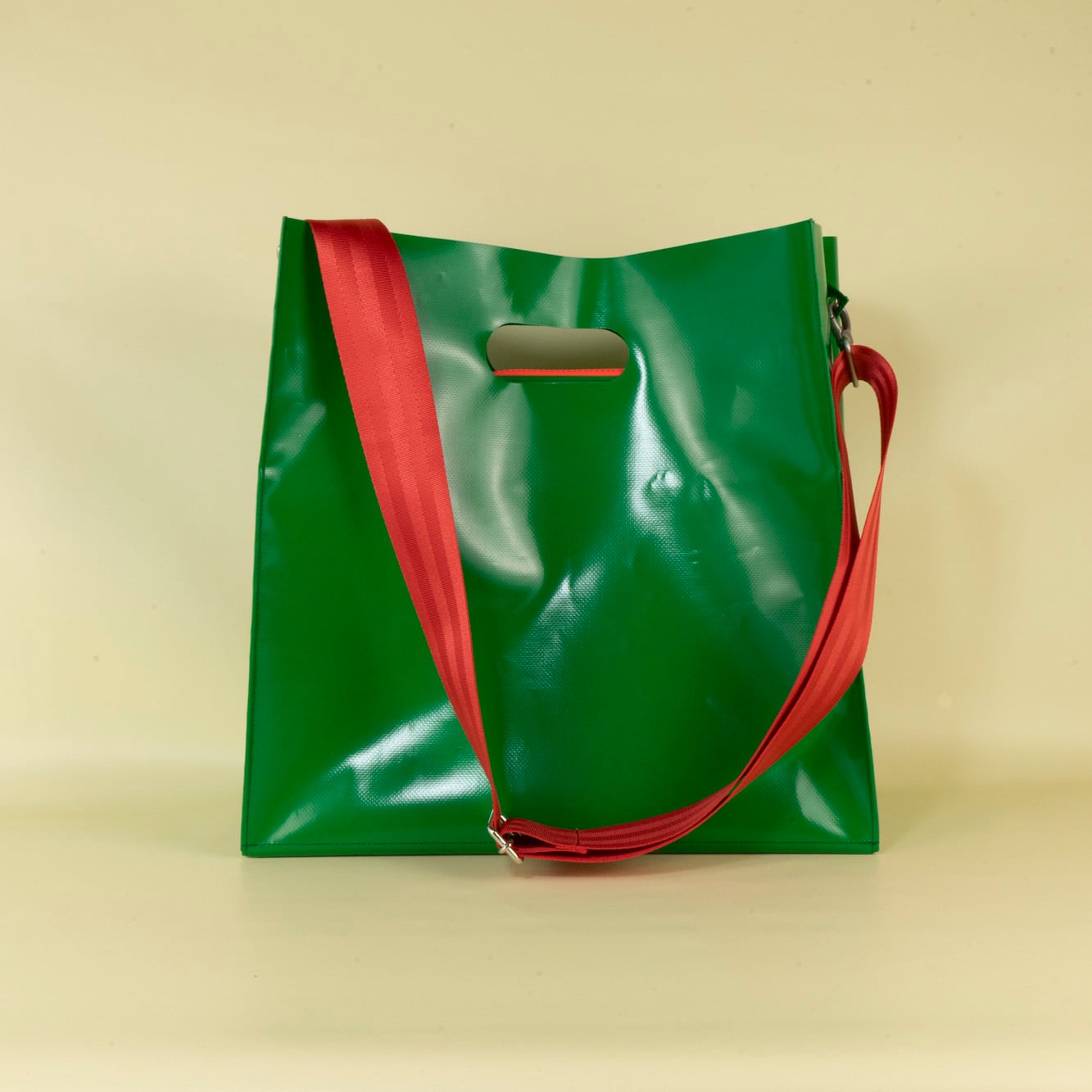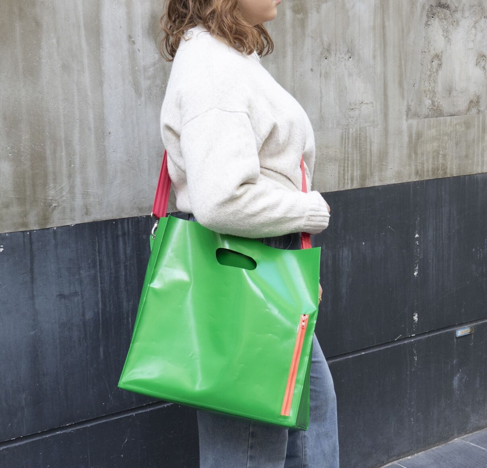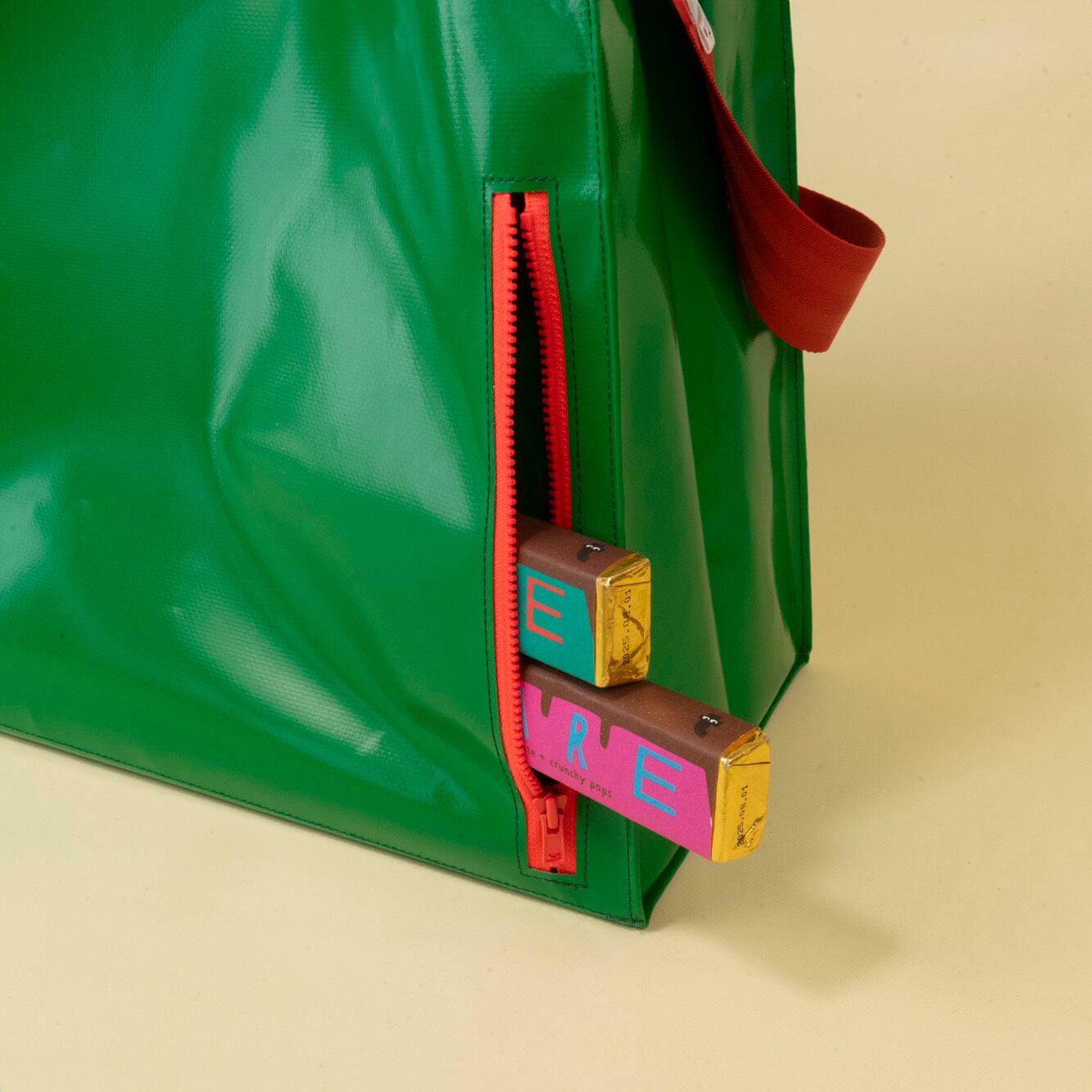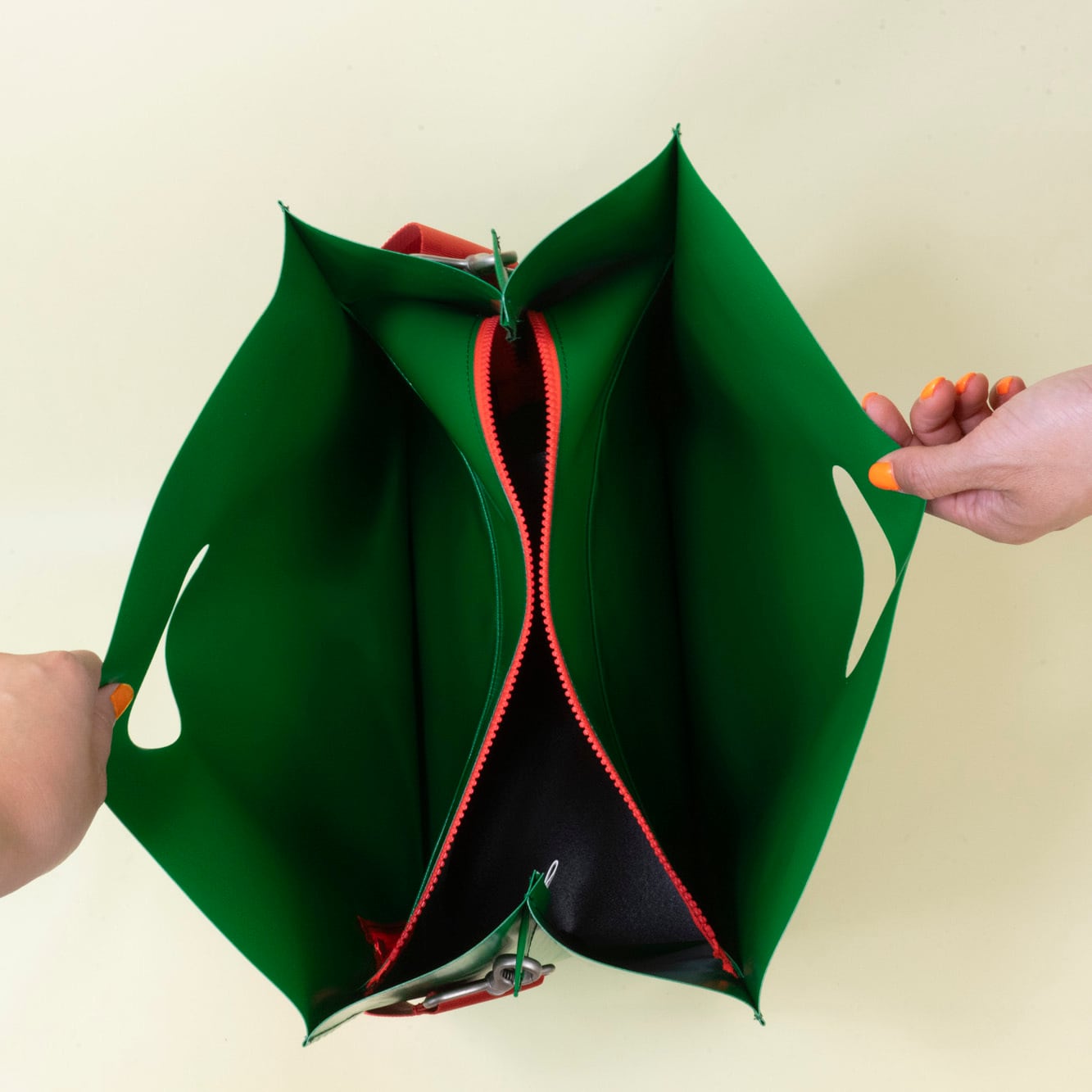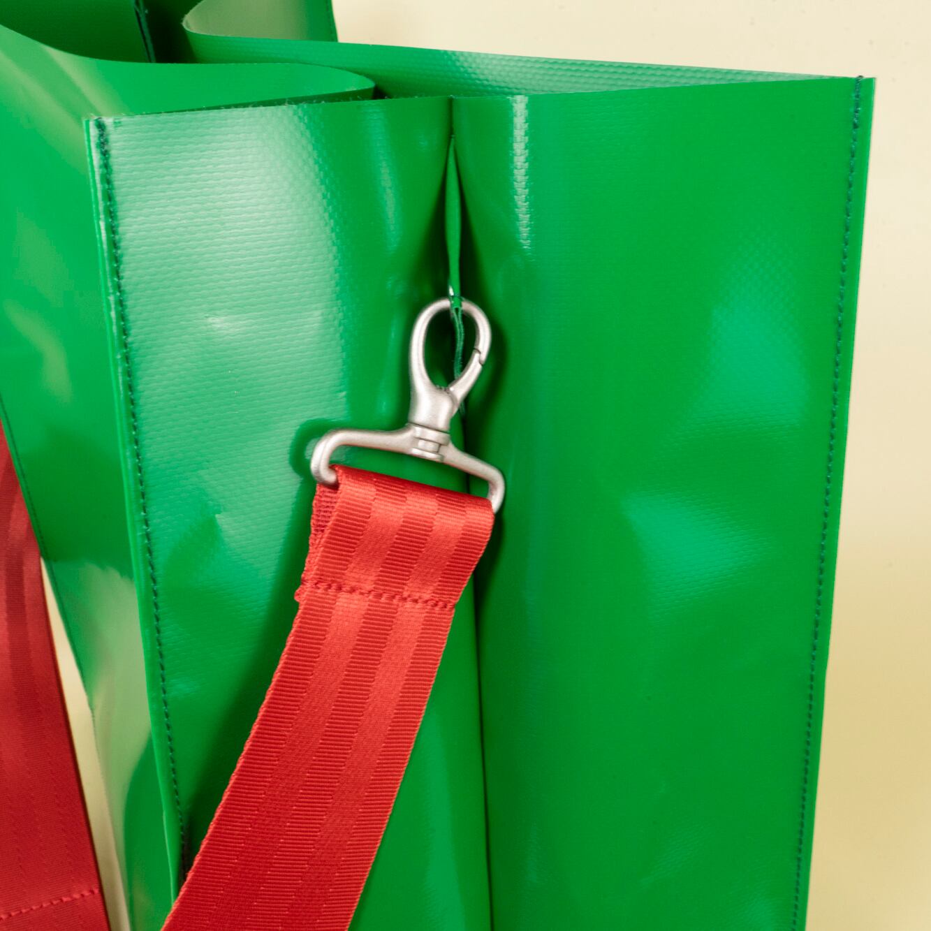目が覚めるような鮮やかな生地は、サーカス小屋にも使われているターポリン素材。丈夫なだけでなく防水・防炎と高機能・高性能です。