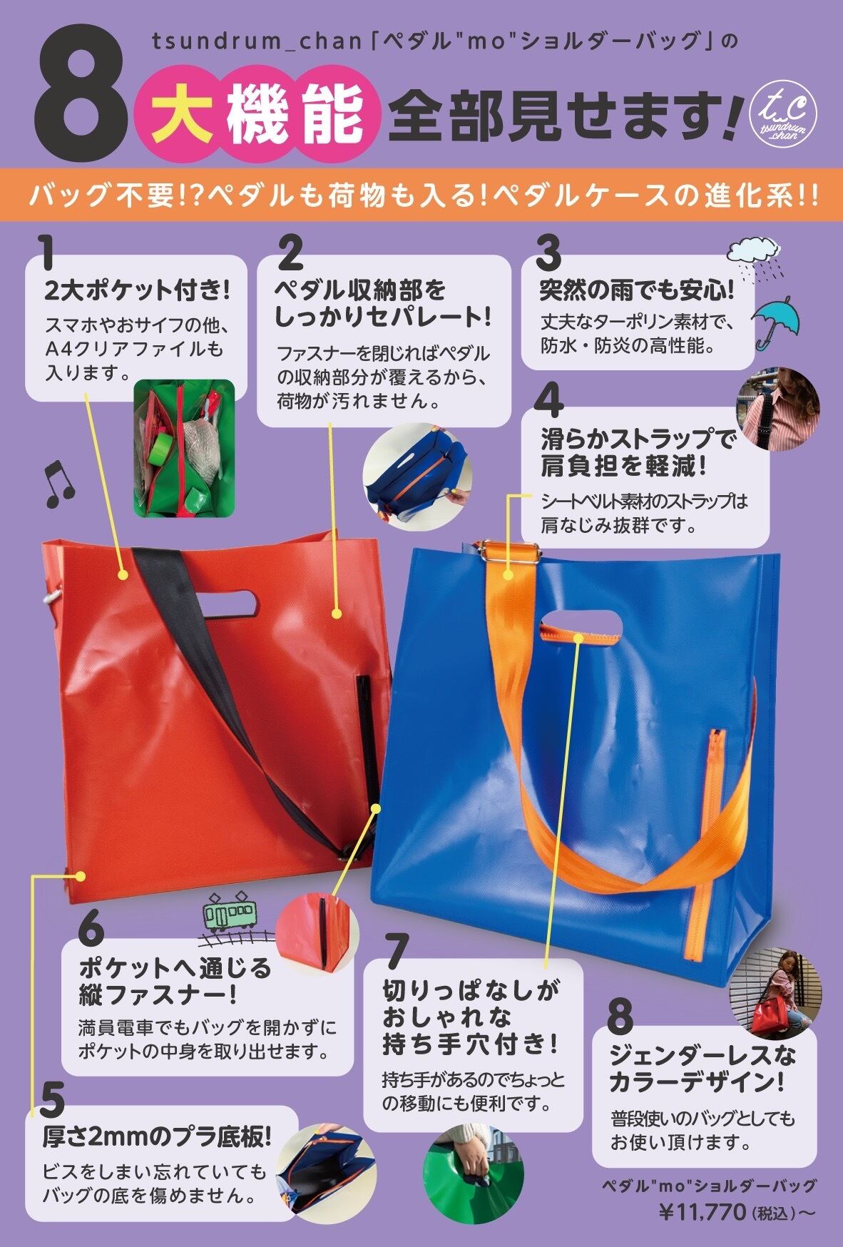 マイペダル派の方必見!ペダルケースの他にもう一つバッグを持たなきゃいけないあのモヤモヤとさよならできるかもしれない、ペダルケースの進化系!『ペダル"mo"ショルダーバッグ』に女性に人気のグリーン×レッドが再登場!