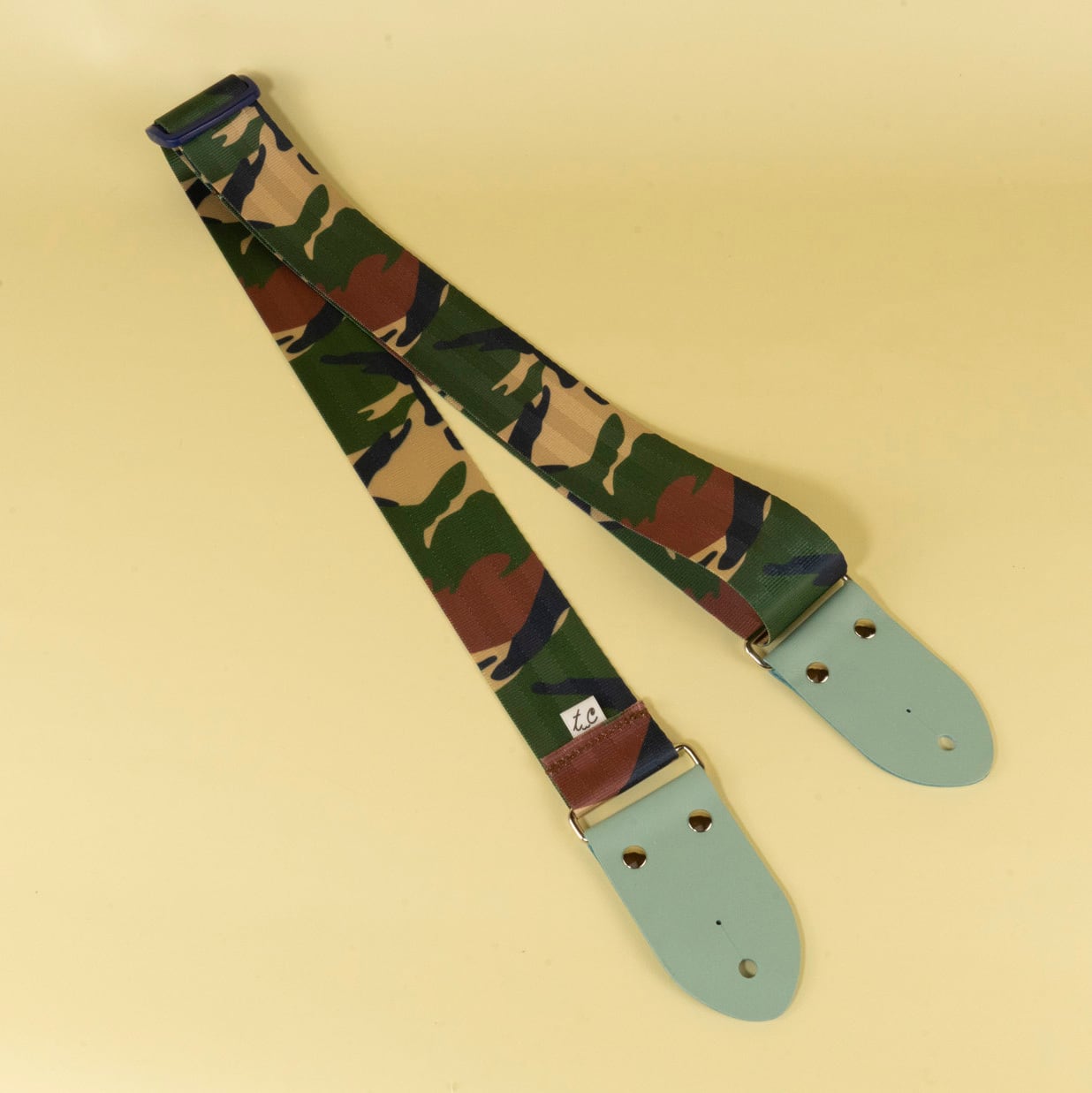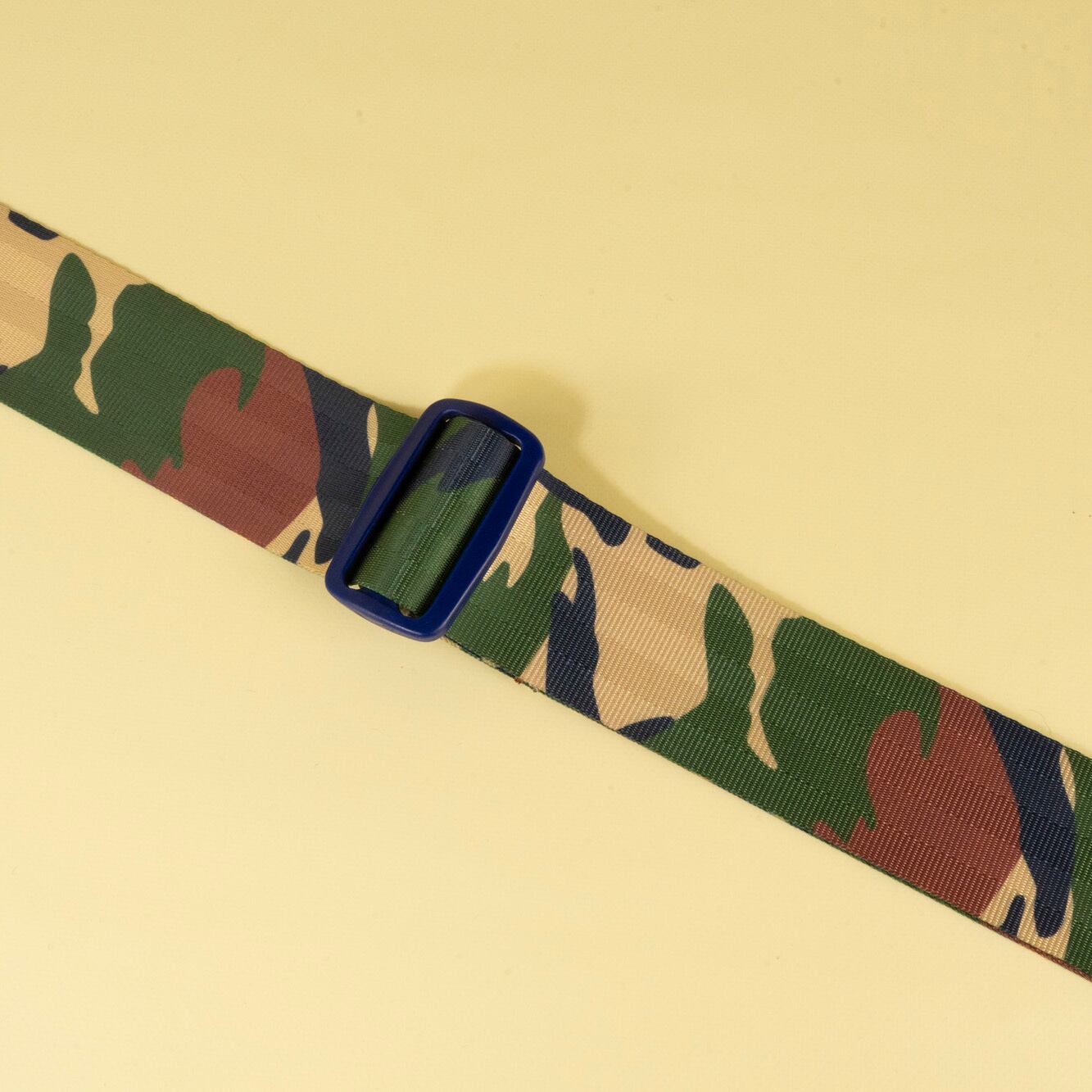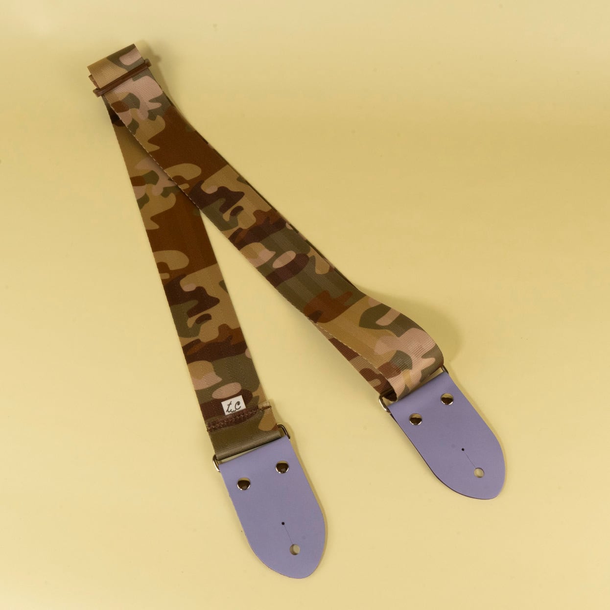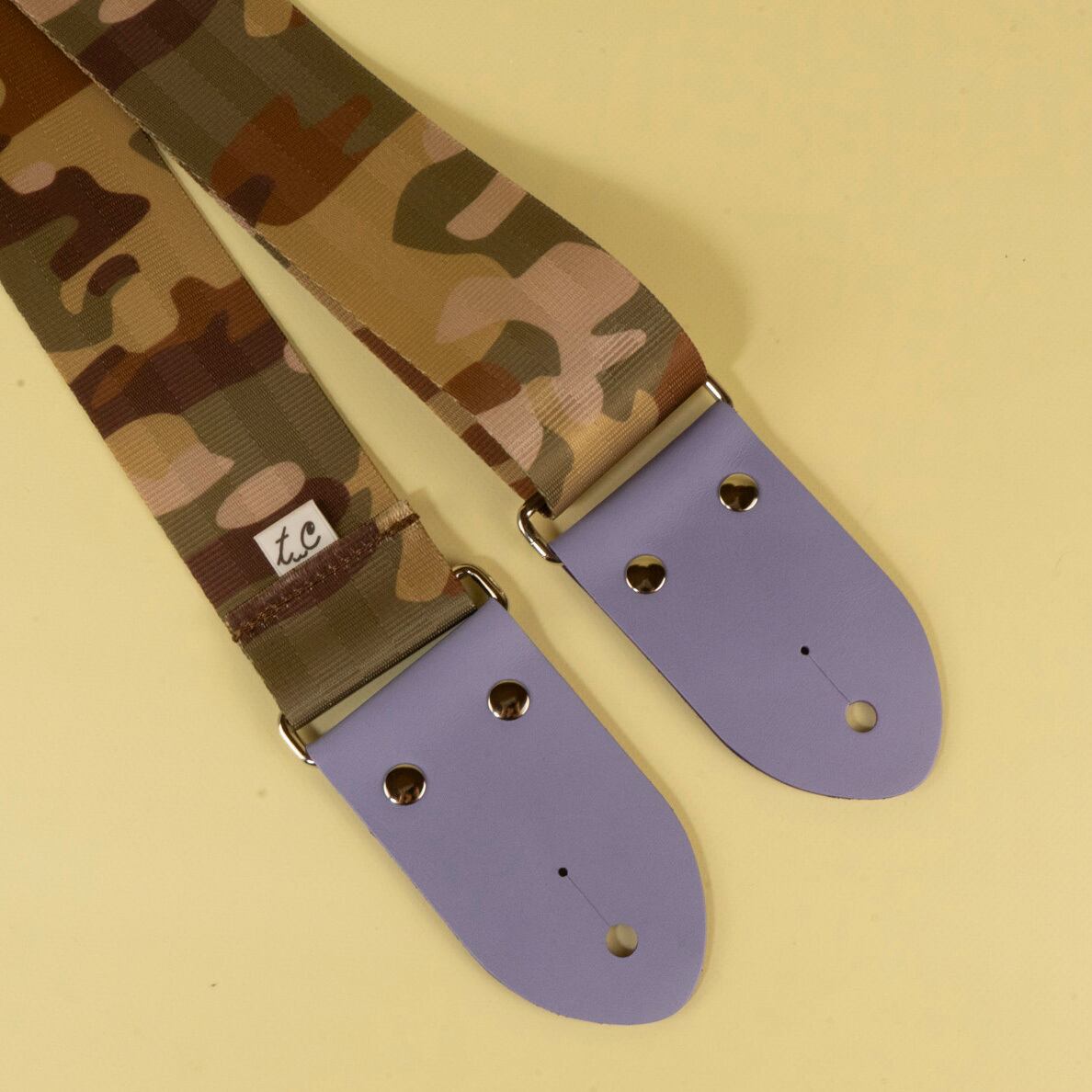 滑らかで肌辺りもよいシートベルト素材と、鮮やか過ぎないペールカラーのストラップエンドを合わせ、ポップなプラアジャスターでまとめたギターストラップは、迷彩柄をその役割から解き放ち、その模様の煩雑さや色を純粋に楽しめるデザインになっています。