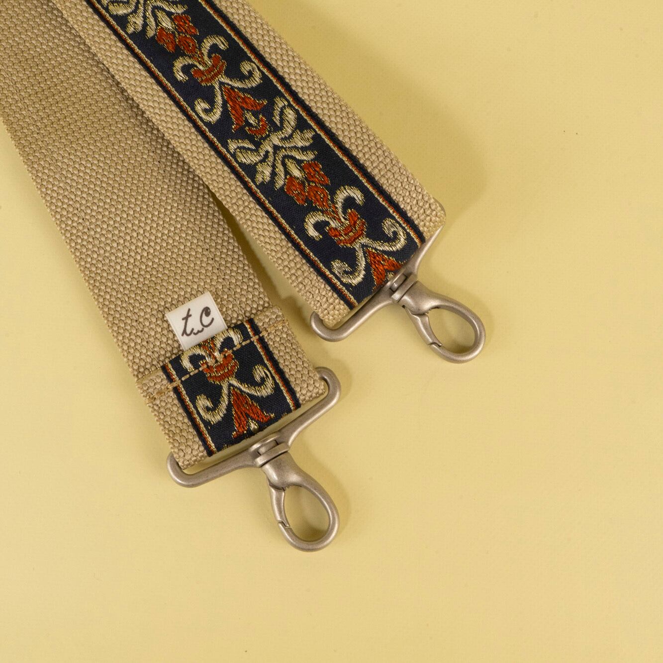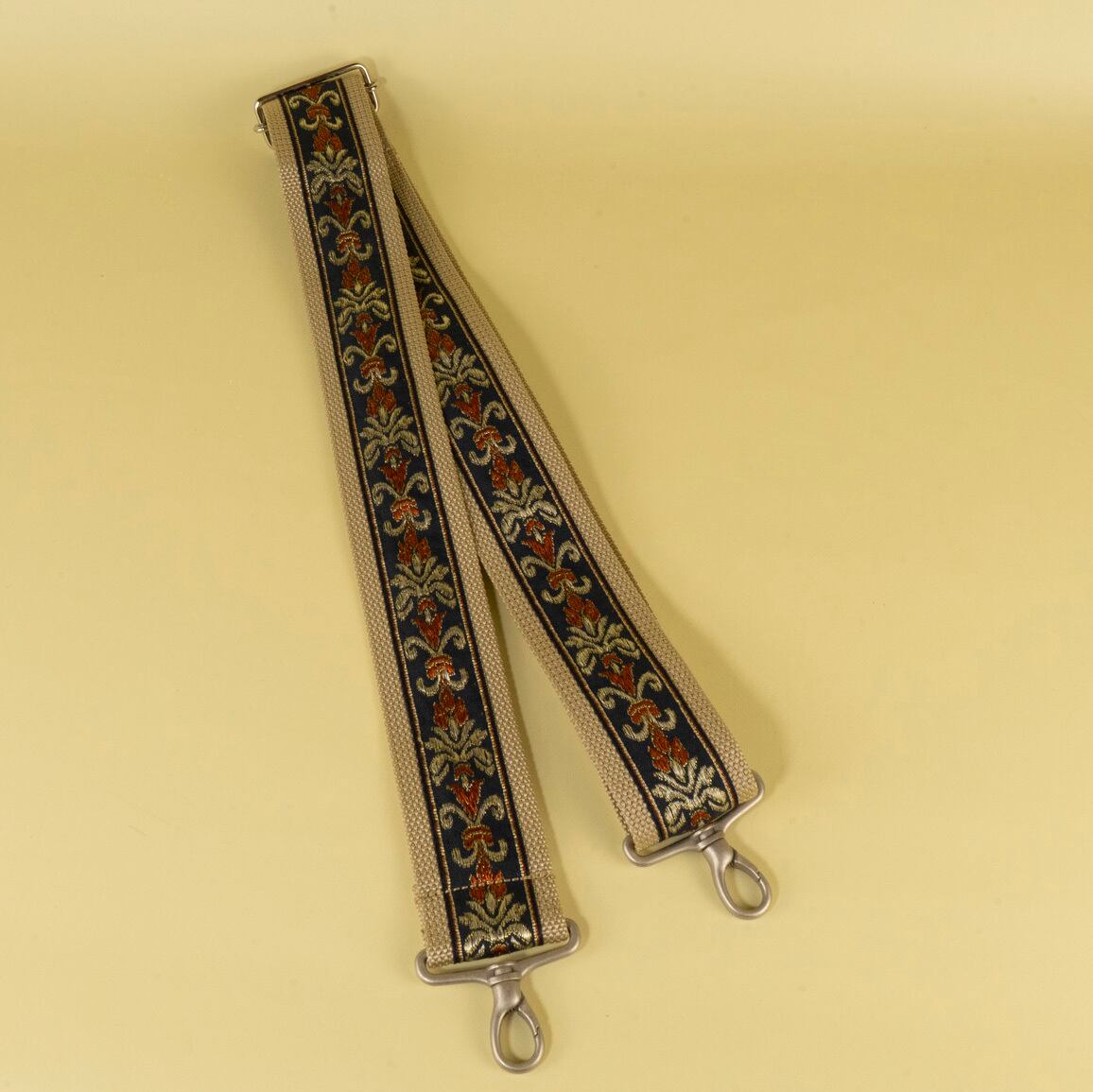 ボタニカル柄の装飾をあしらい秋らしい落ち着いた色調でまとめた、ユニバーサルなデザインで人気の「ボタニカルギターストラップ」に、for ペダルケースなショルダーストラップが登場!