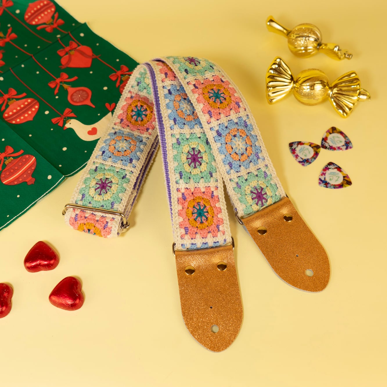 *「かぎ編みギターストラップ フラワー」とはお花のカラーや配置が異なります。