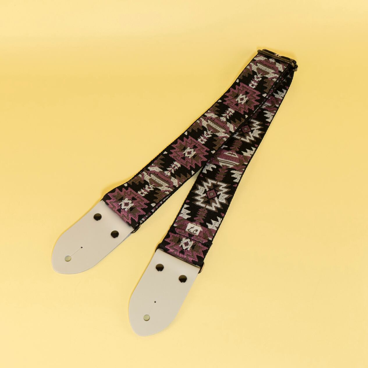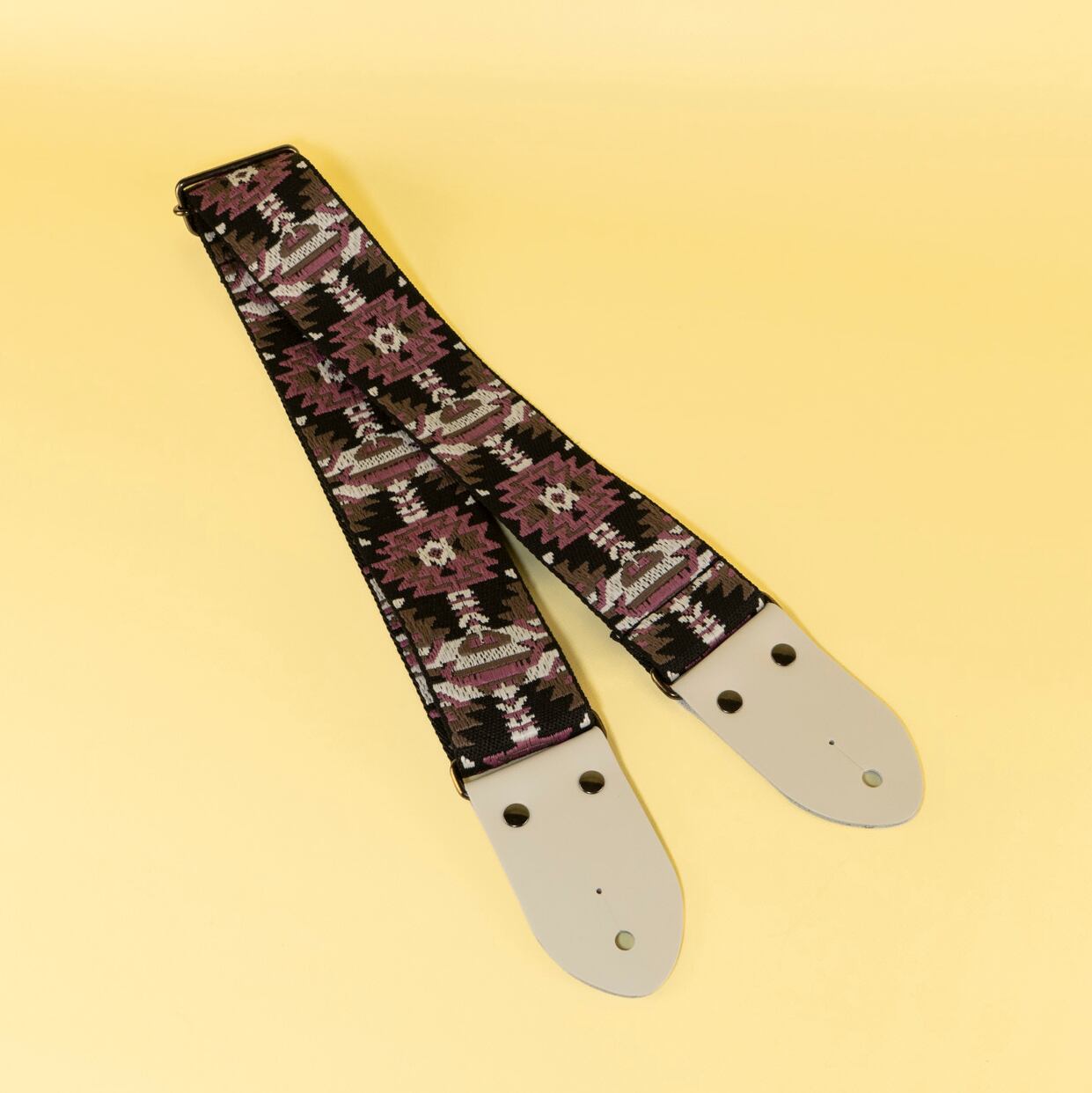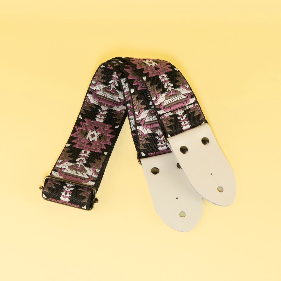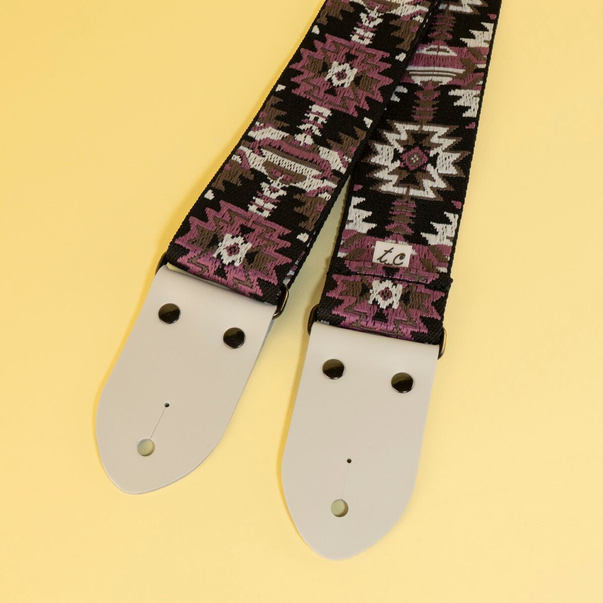 賑やかな幾何学模様ながらブラックとパープルを基調にした落ち着いたデザインを、雪のように白いストラップエンドでまとめた、これからの季節にぴったりのデザインです!