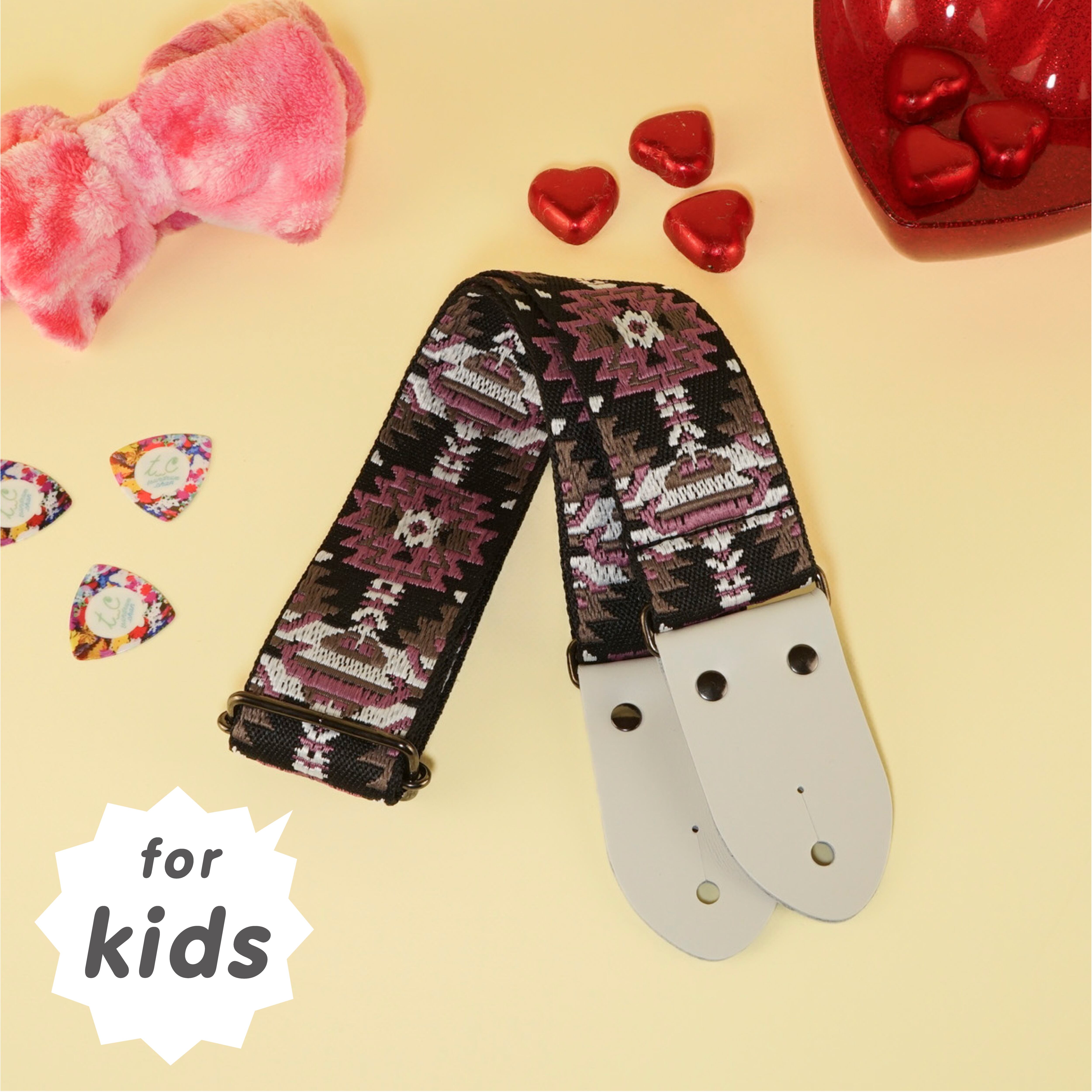 秋冬に定番のノルディック柄が人気のギターストラップに、キッズサイズが登場!