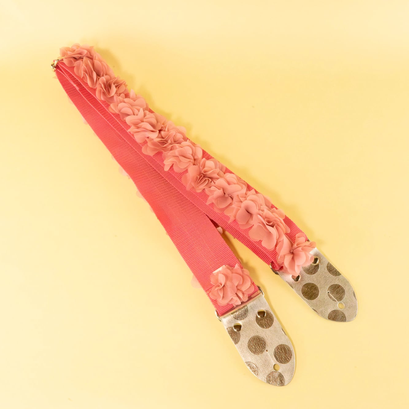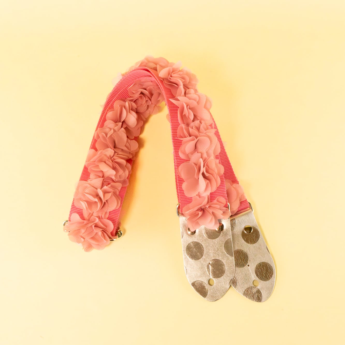 Petals dancing in the breeze, bringing with them the air of a serene, sunny season. We’ve captured that springtime essence in our new "Chiffon Flower Guitar Strap."