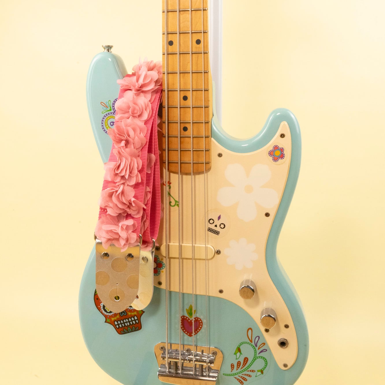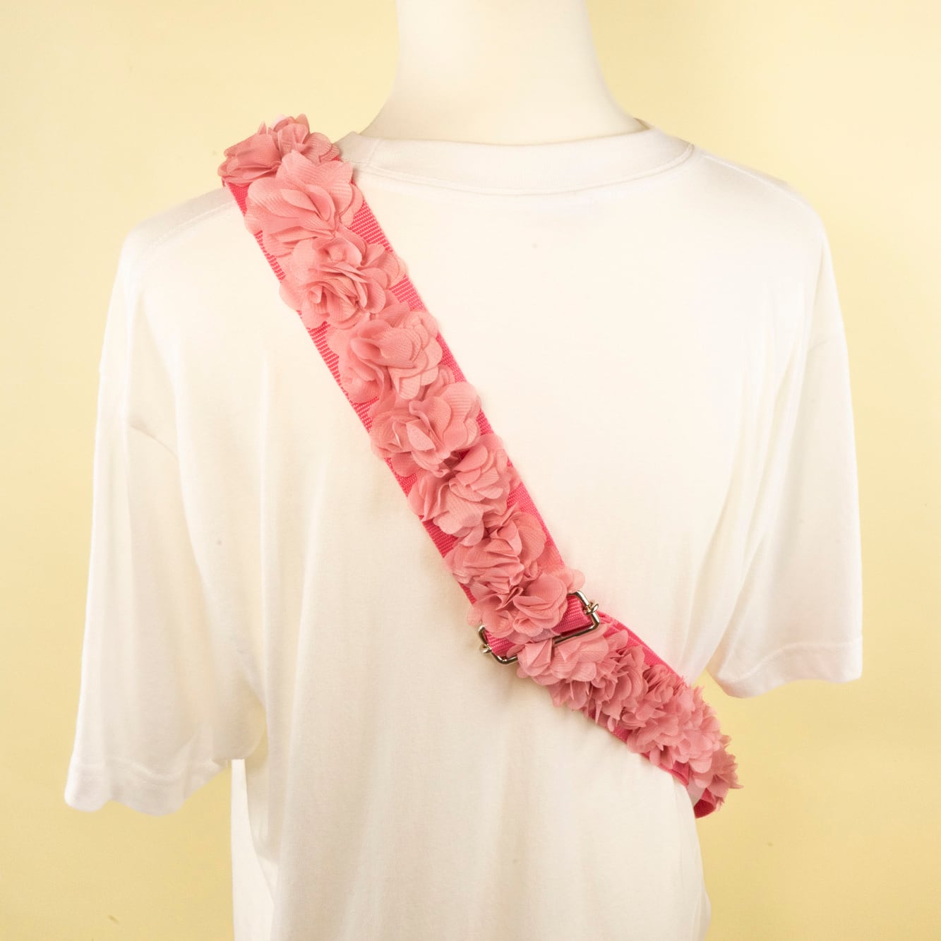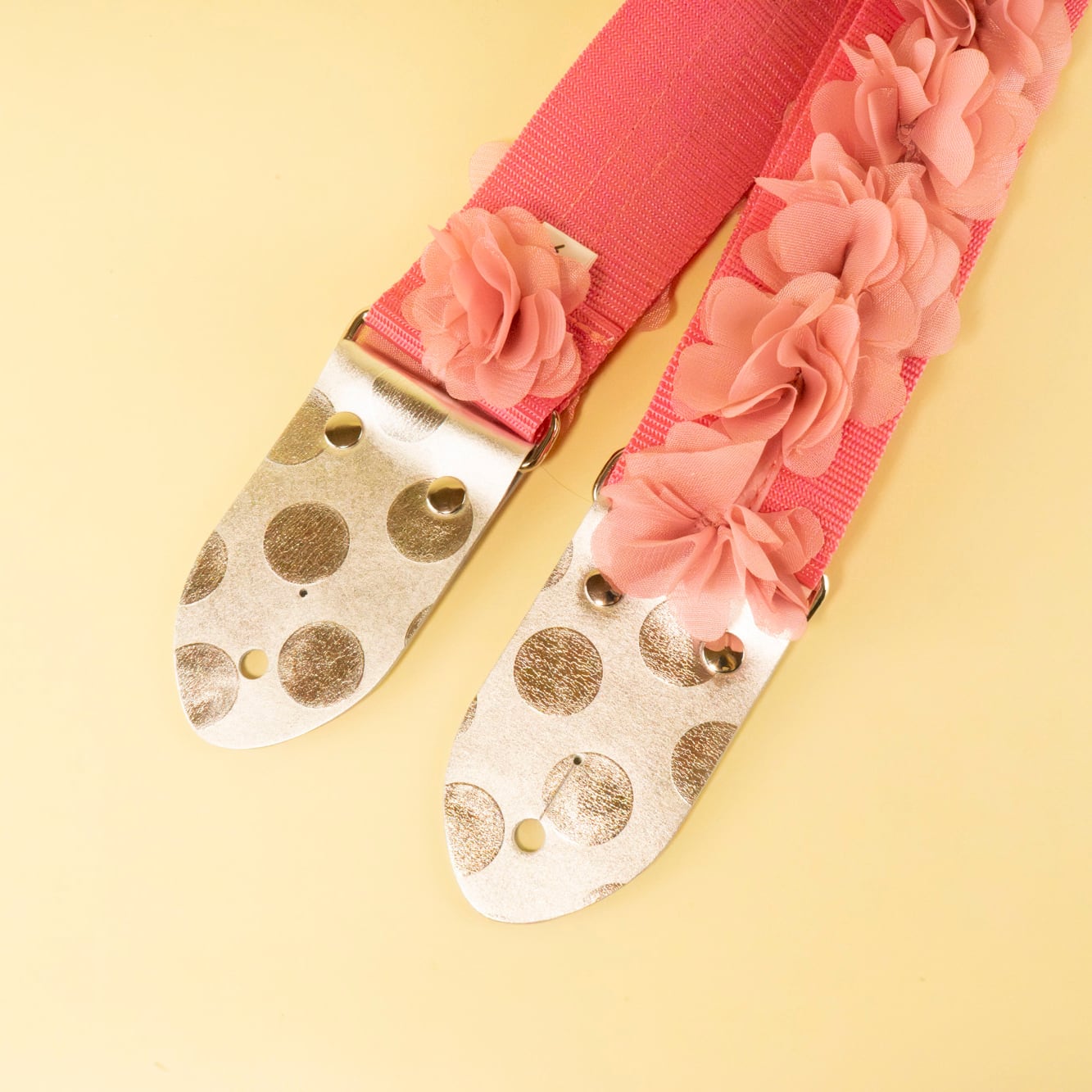 そんな春の情景を詰め込んだ「シフォンフラワー・ギターストラップ」が誕生しました。