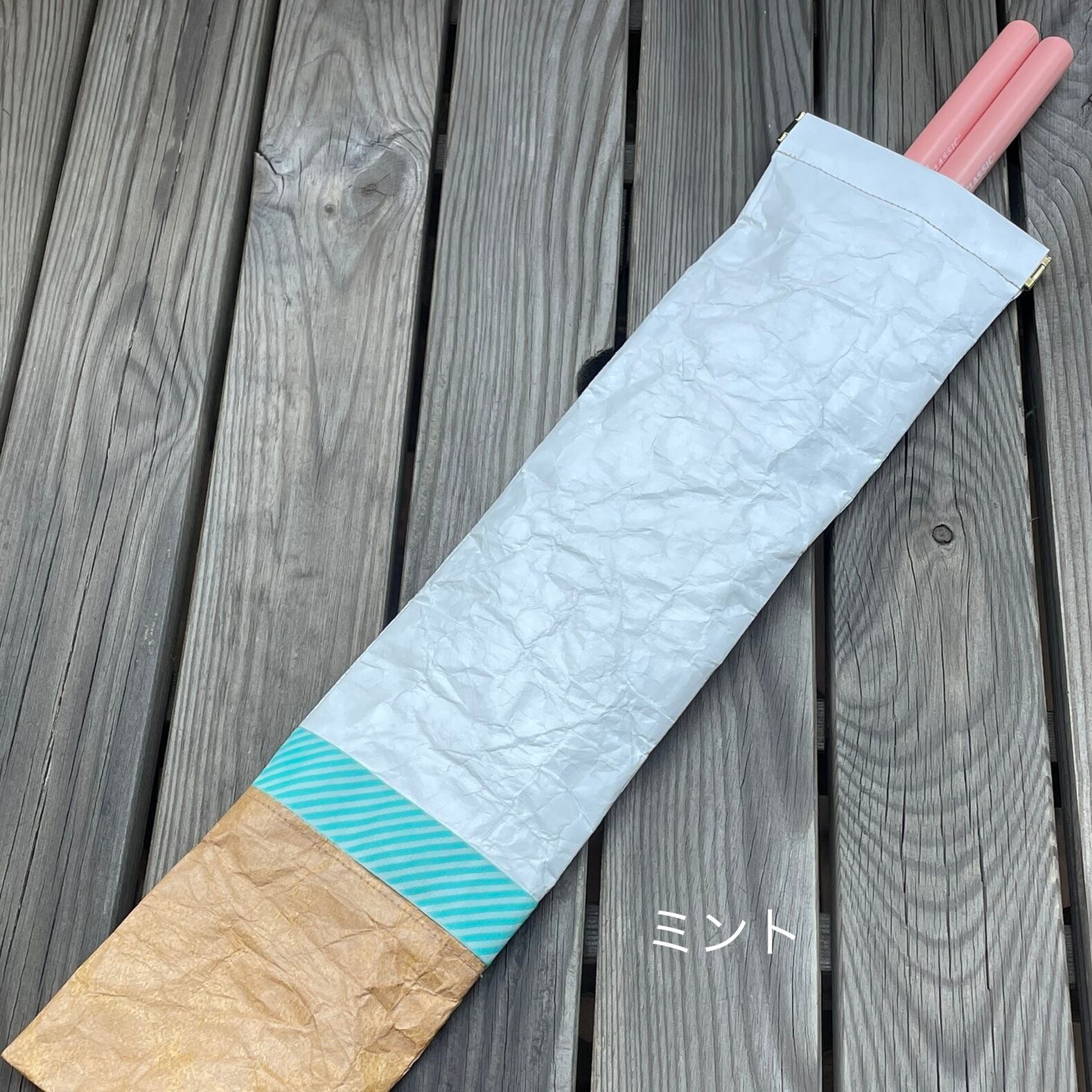 タイベック®︎(ハード)生地にぐるりと巻いたストライプのリボンがかわいいスティックケースは、フラットな作りでカバンの中にスッキリおさまる『Think it flat』シリーズ。