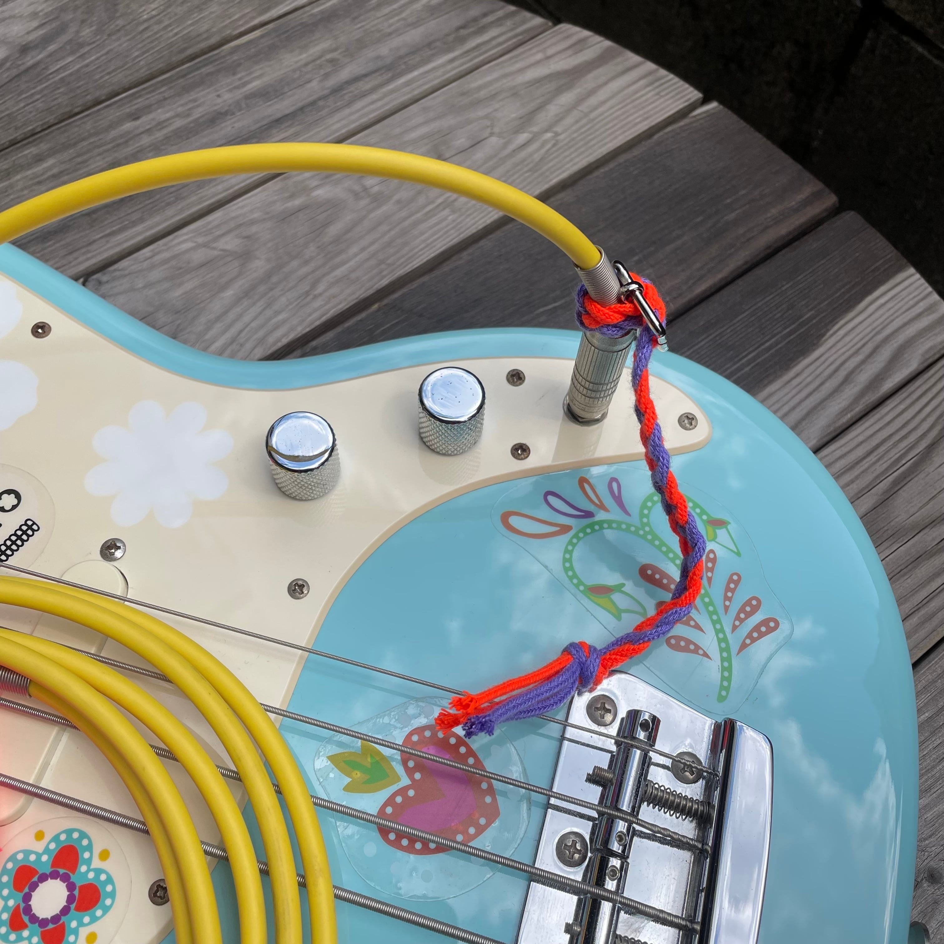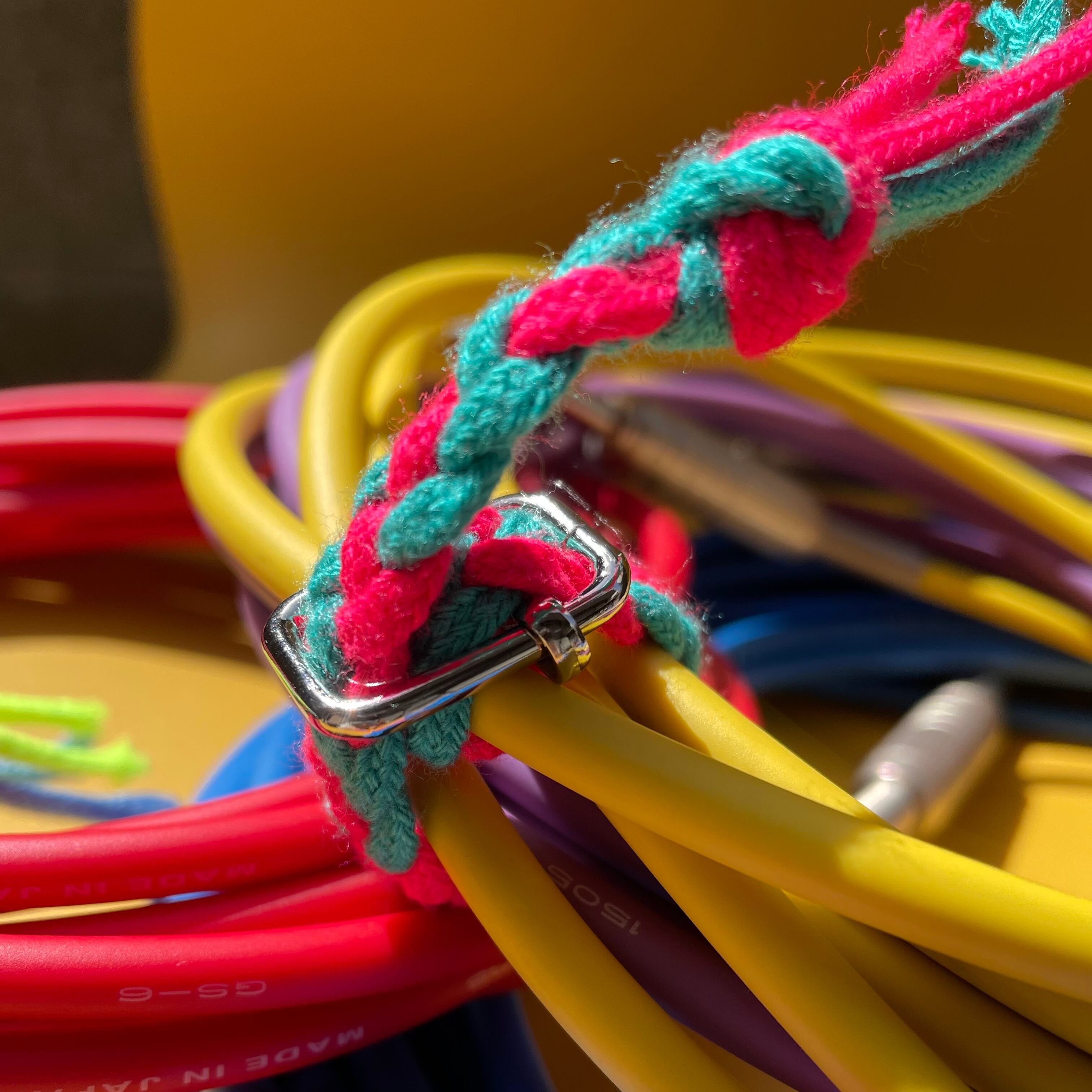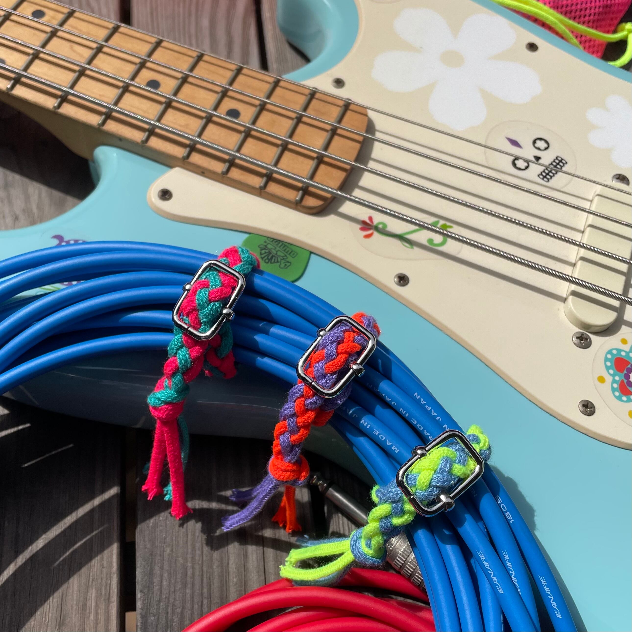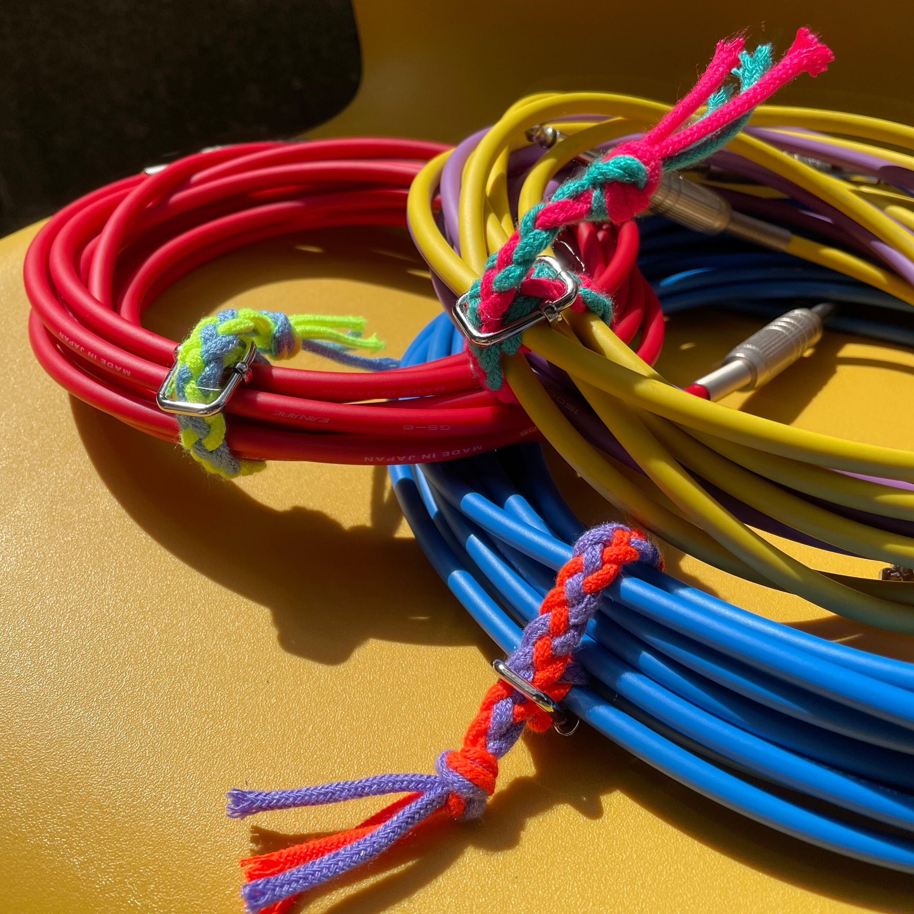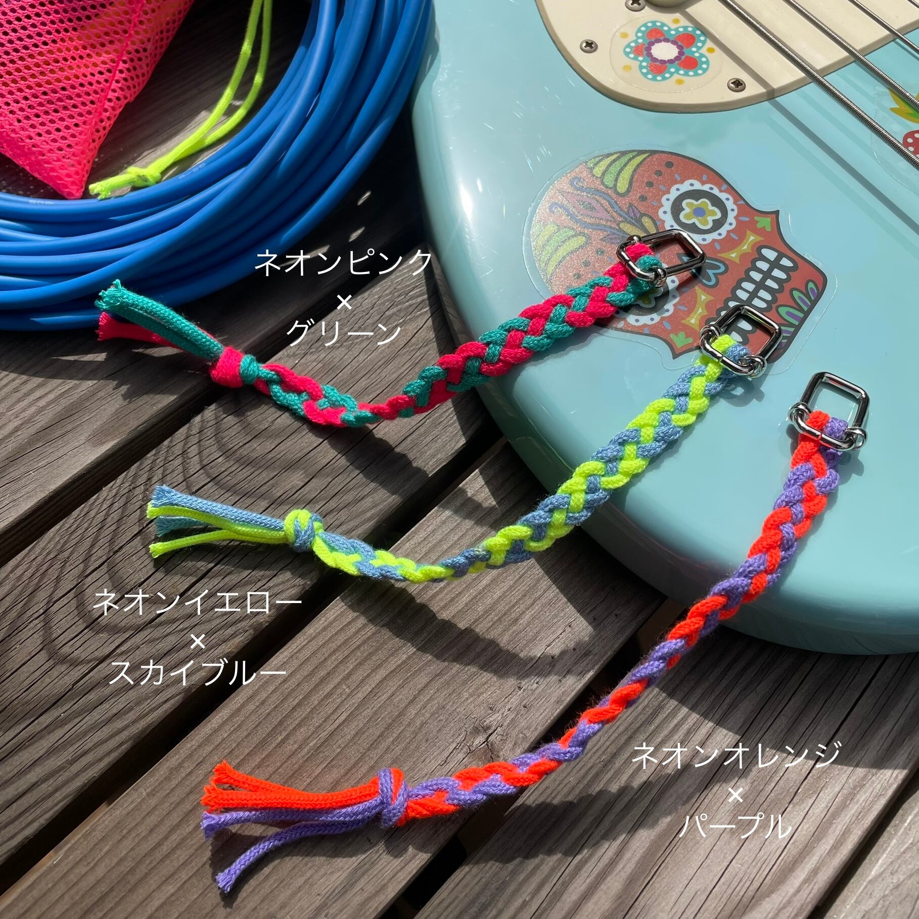 アクリルコードを編み上げたツートーンのタイは、どんな色のシールドにも映えるジェンダーレスなデザイン。ビビッドカラーが紛失防止にも一役買ってくれるはず。