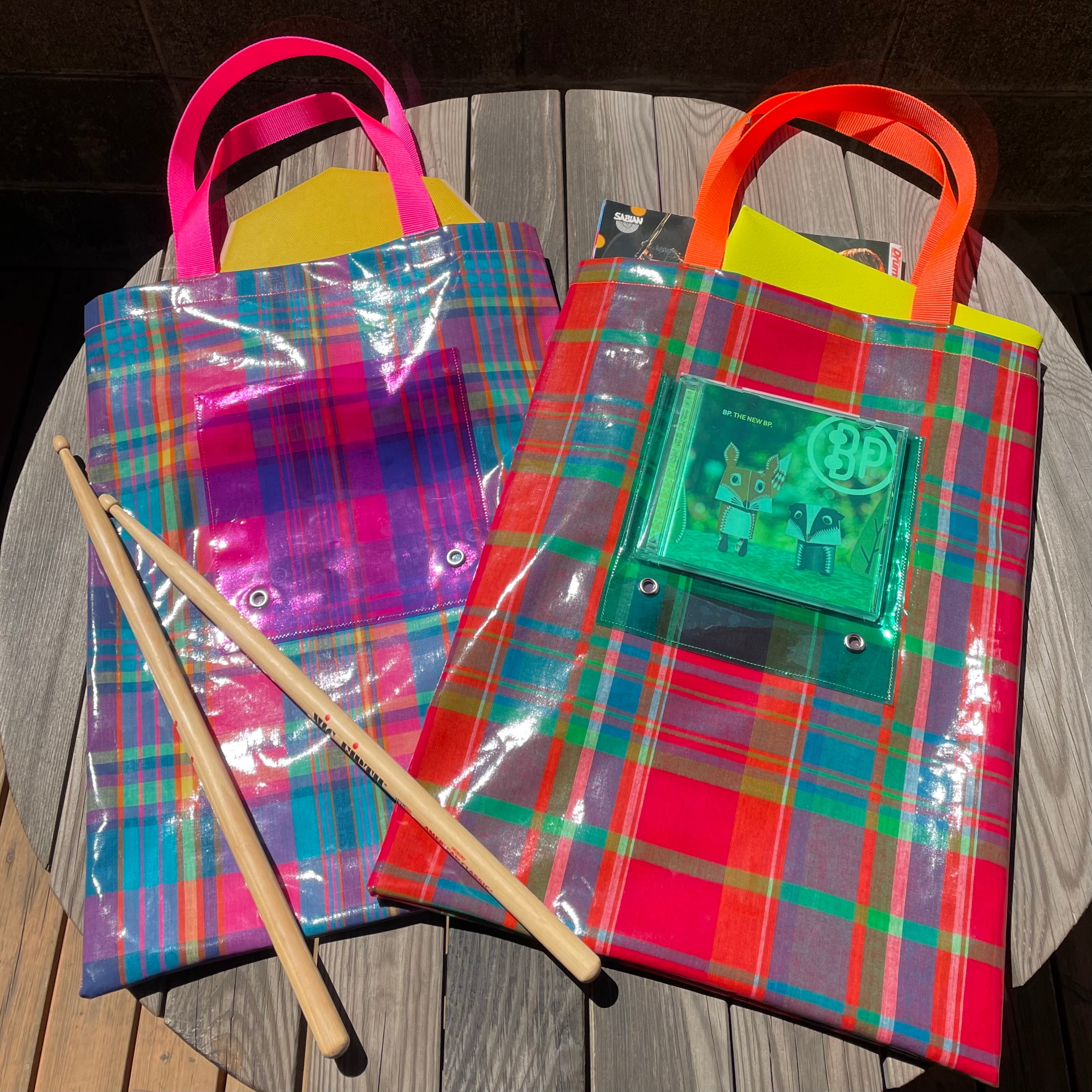 お気に入りの1枚もスティックも入れられるレッスンバッグ『スティック”mo”トートバッグ』シリーズに、雨の日の鬱々とした気分を吹き飛ばしてくれるポップでカラフルなチェック柄が登場!