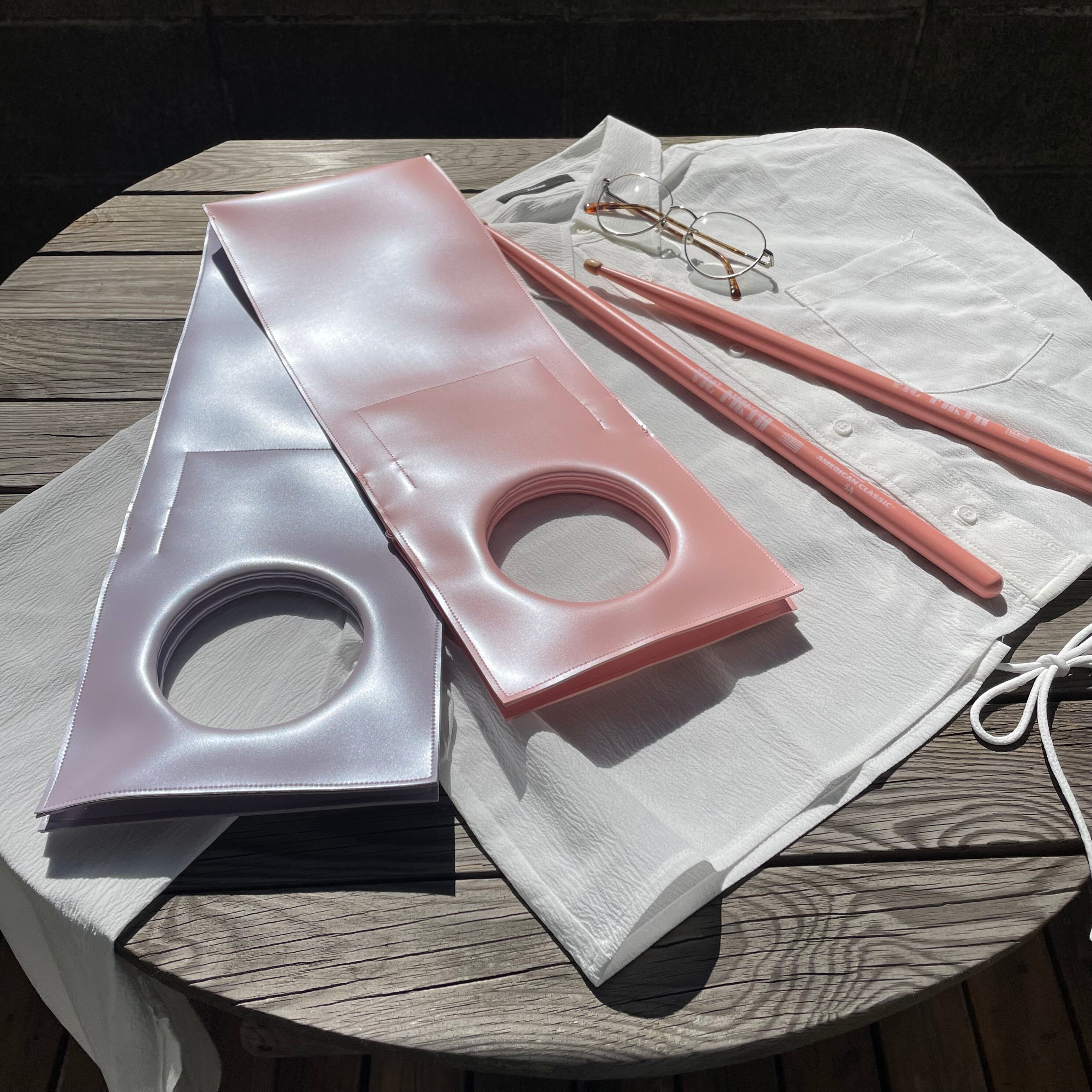 コロンと丸く切り抜かれた持ち手がかわいいスティックバッグ『A hole』シリーズに、パール感のある淡いピンクと薄いパープルがかわいい、乙女カラーが登場!