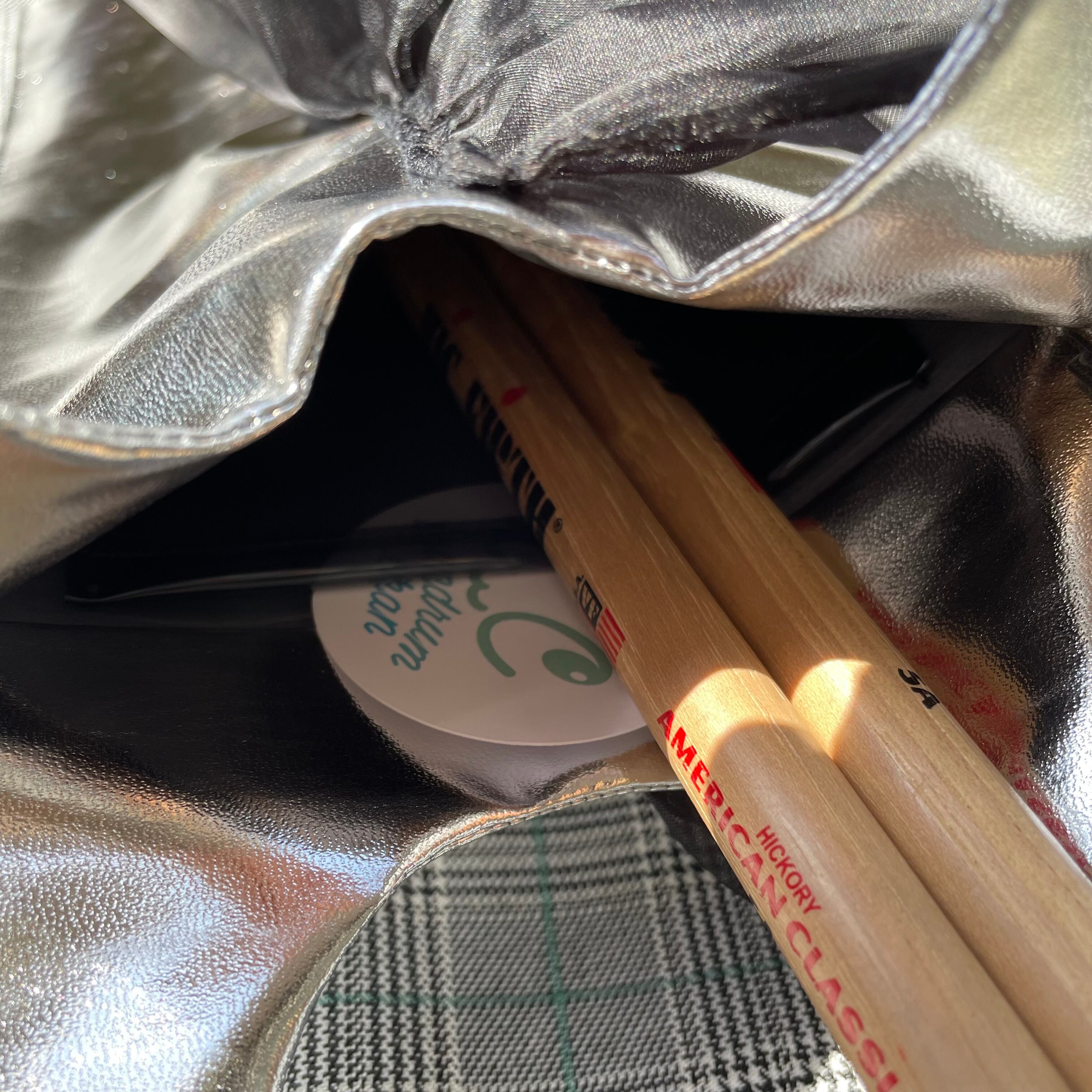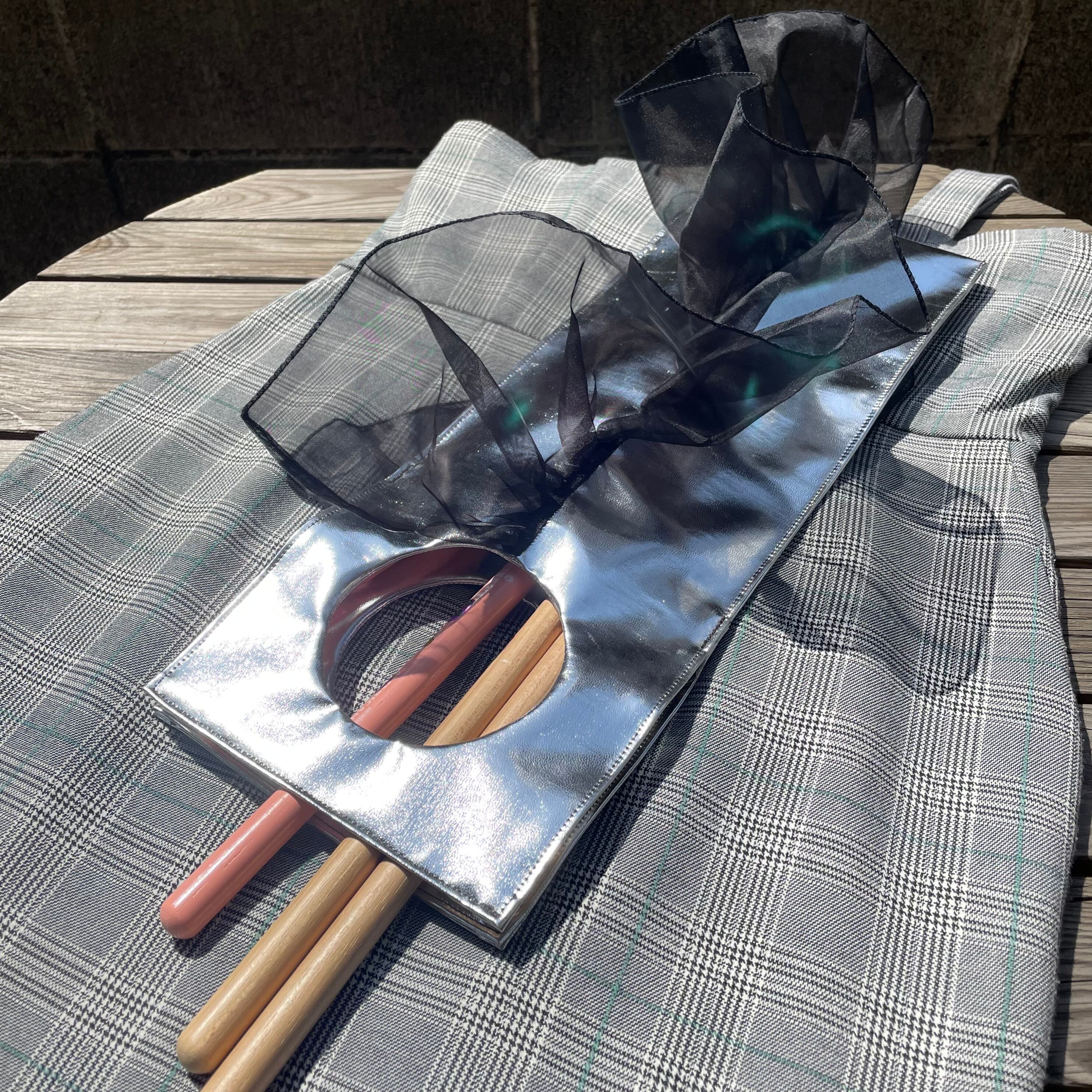 コロンと丸く切り抜かれた持ち手がかわいいスティックバッグ『A hole』シリーズに、シルバー合皮×黒フリルの大人シックでゴージャスなデザインが登場。