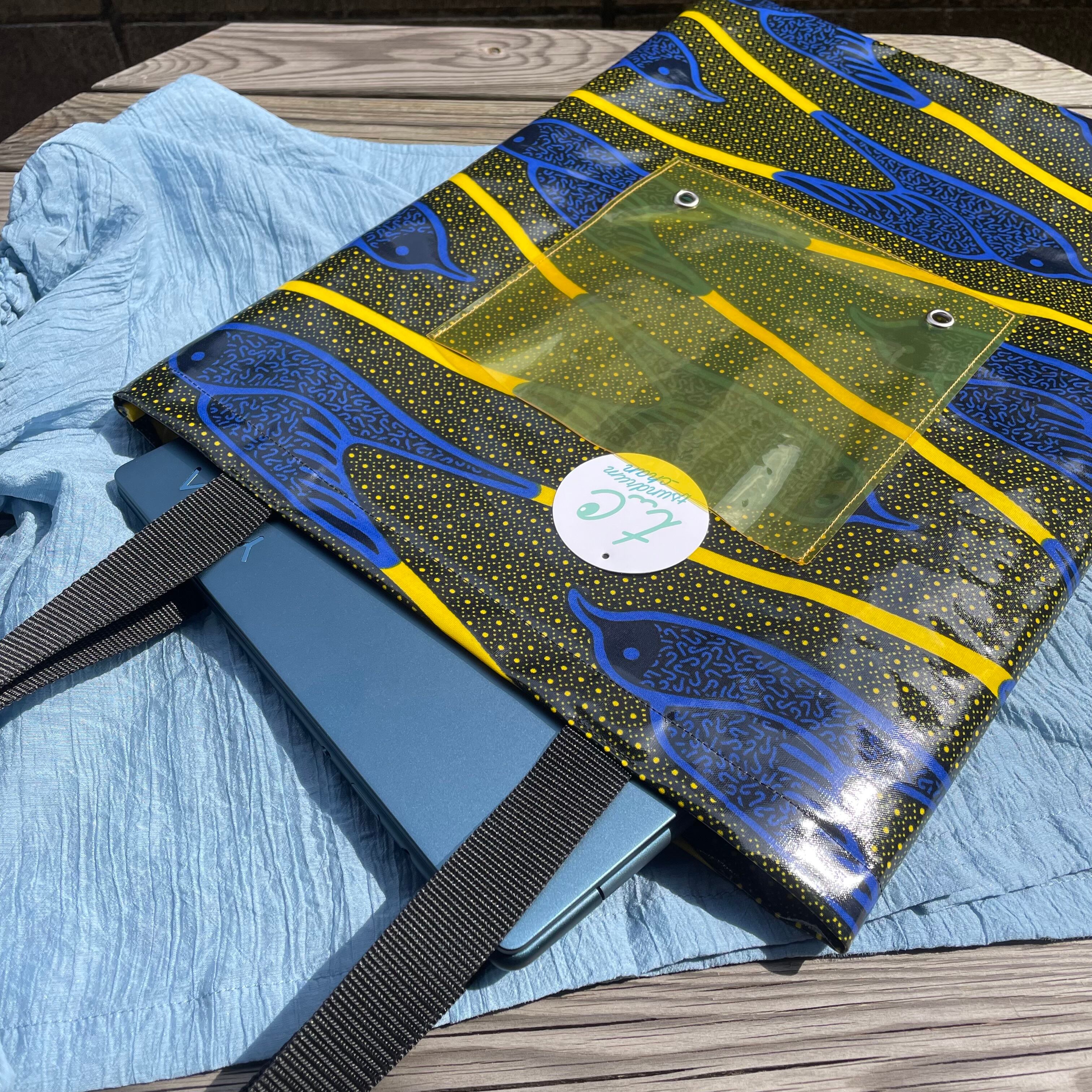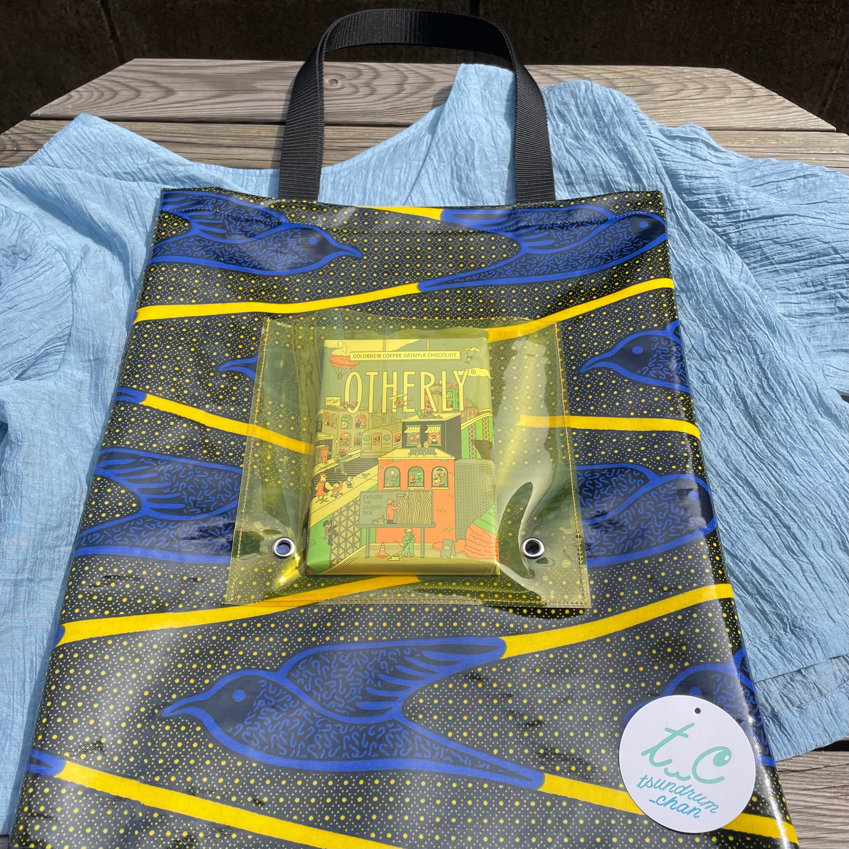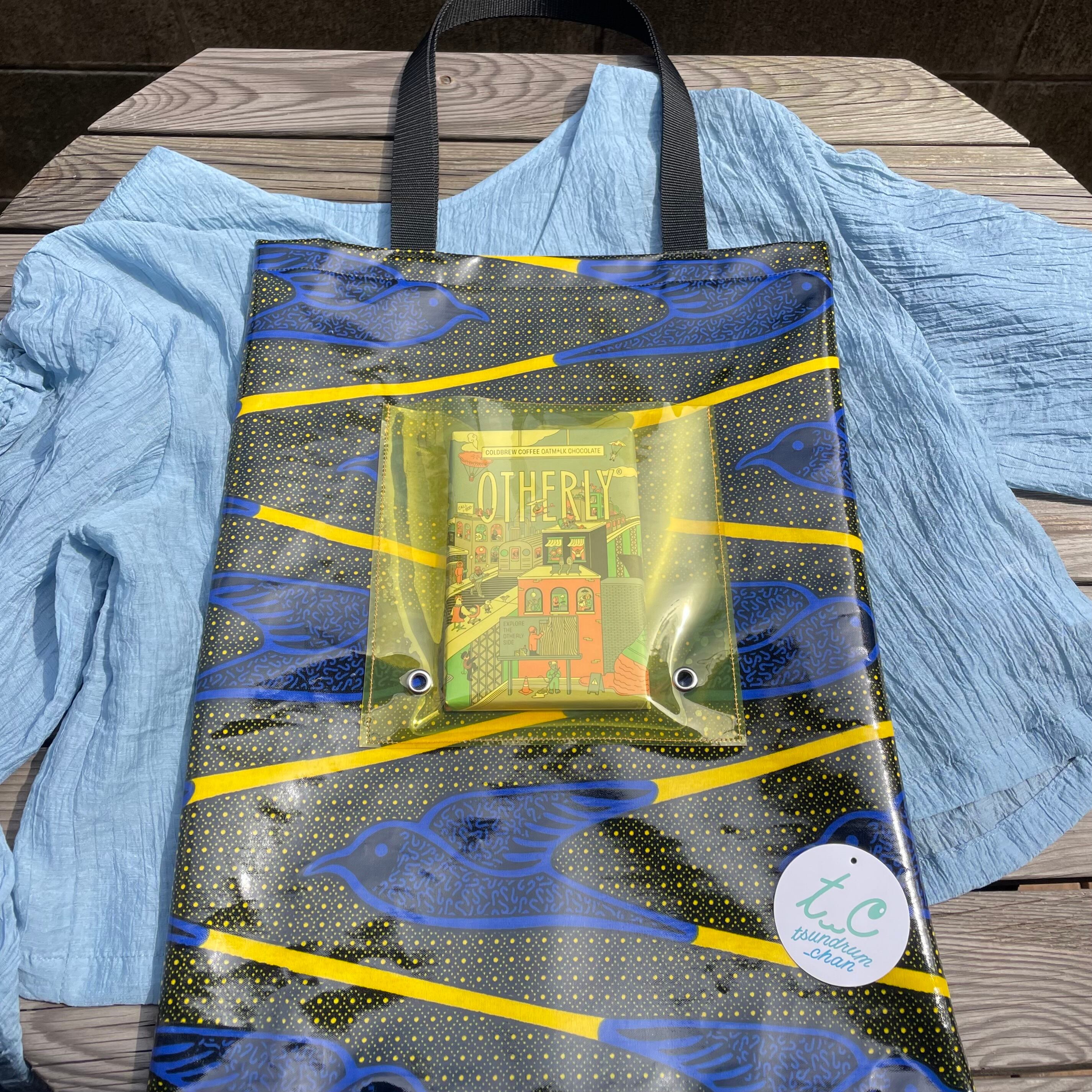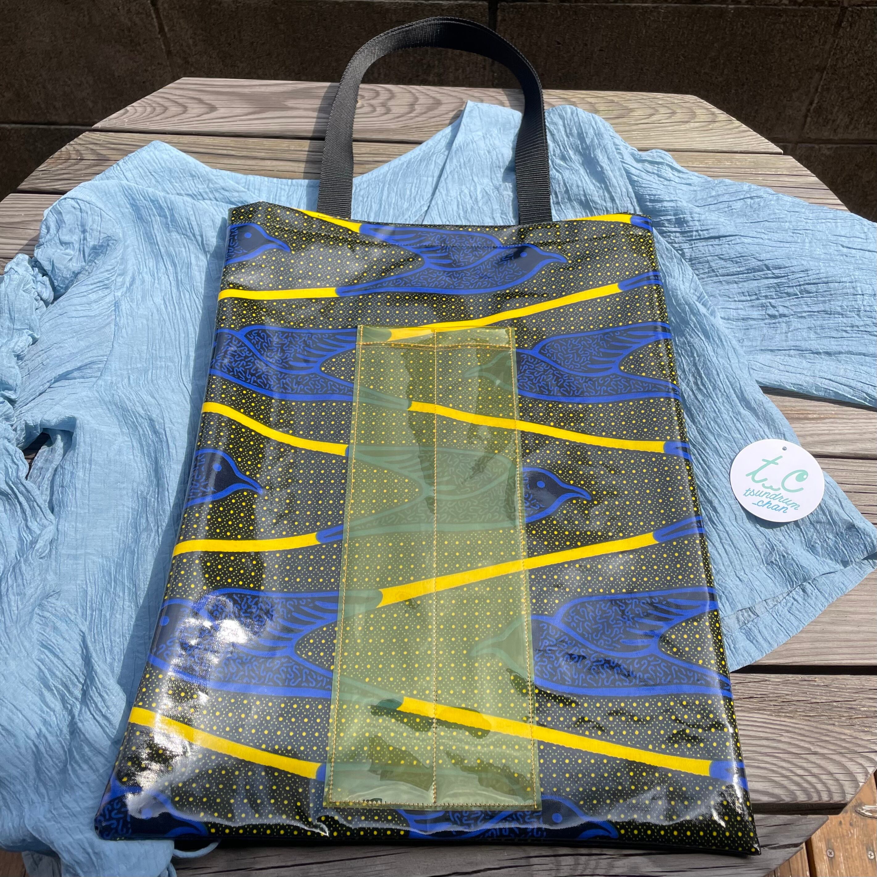 鮮やかな大きな鳥柄のレッスンバッグは鬱陶しい雨の日の気分を空高くまで舞い上がらせてくれ、スタジオ帰りの突然の雨からも大切な荷物を守ってくれる強い味方です。