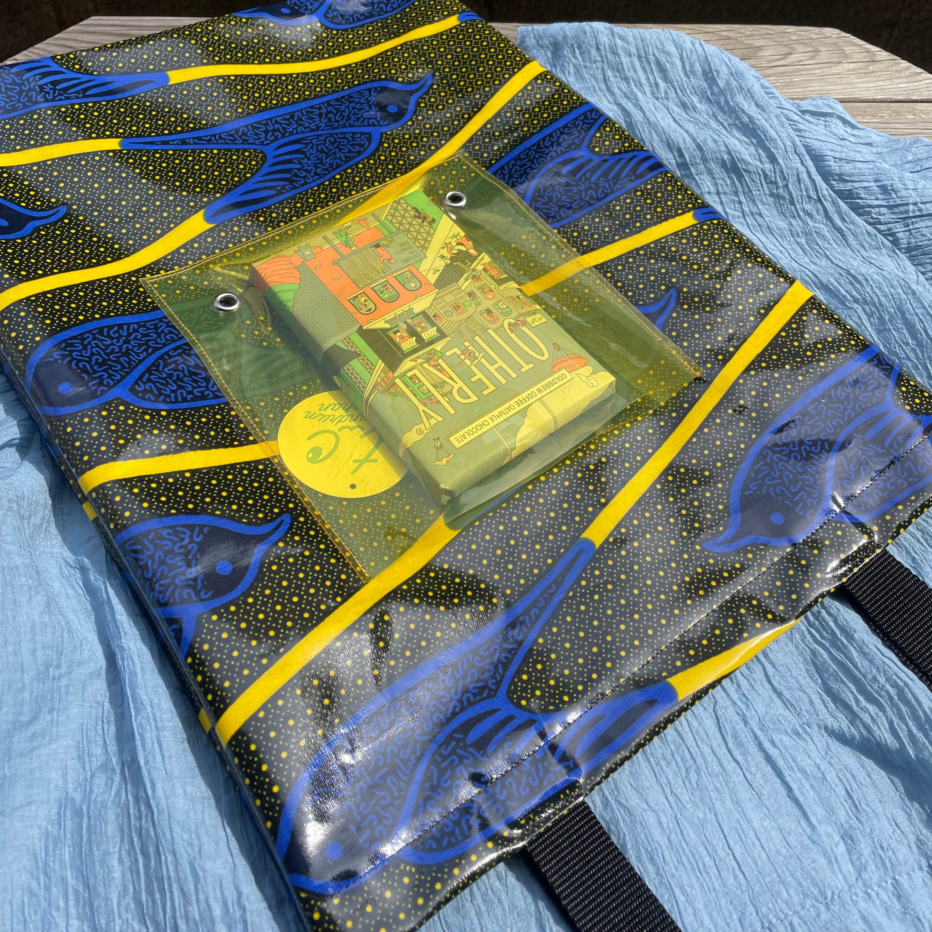 縦・横のポストカードの他にCDもケースごと入れられる、音楽好き・アート好きな方におすすめなトートバッグです。