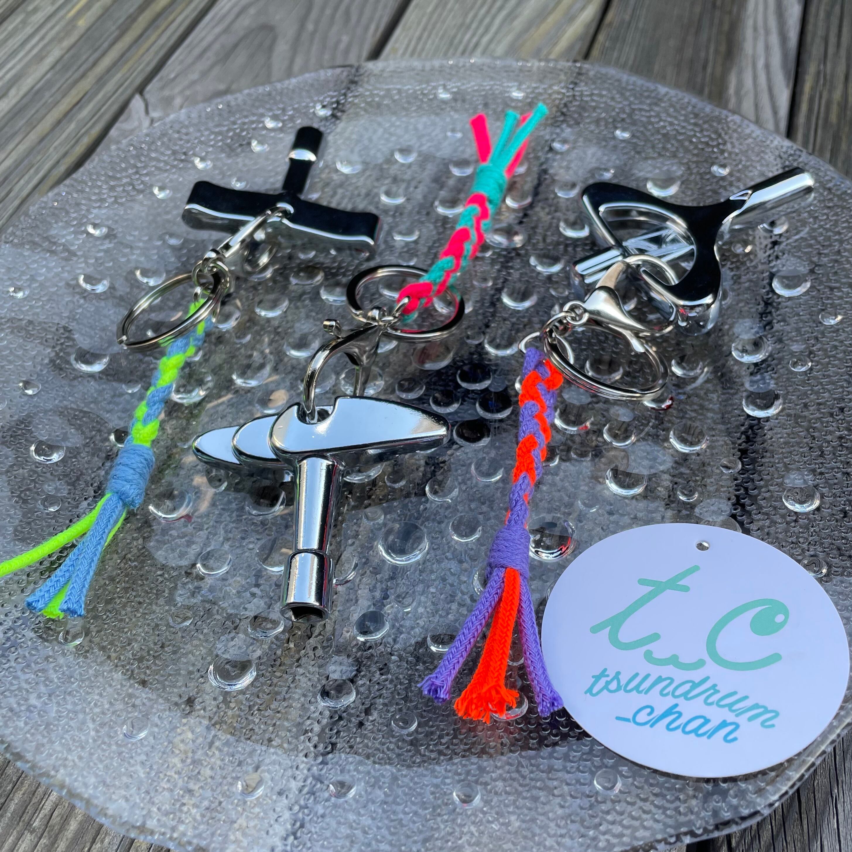 そんな、ドラマーのマストアイテム、チューニングキーに付けられて、しかもかわいく目立ってくれる、四つ編みチューニングキー用のキーホルダーがリニューアルして登場!
