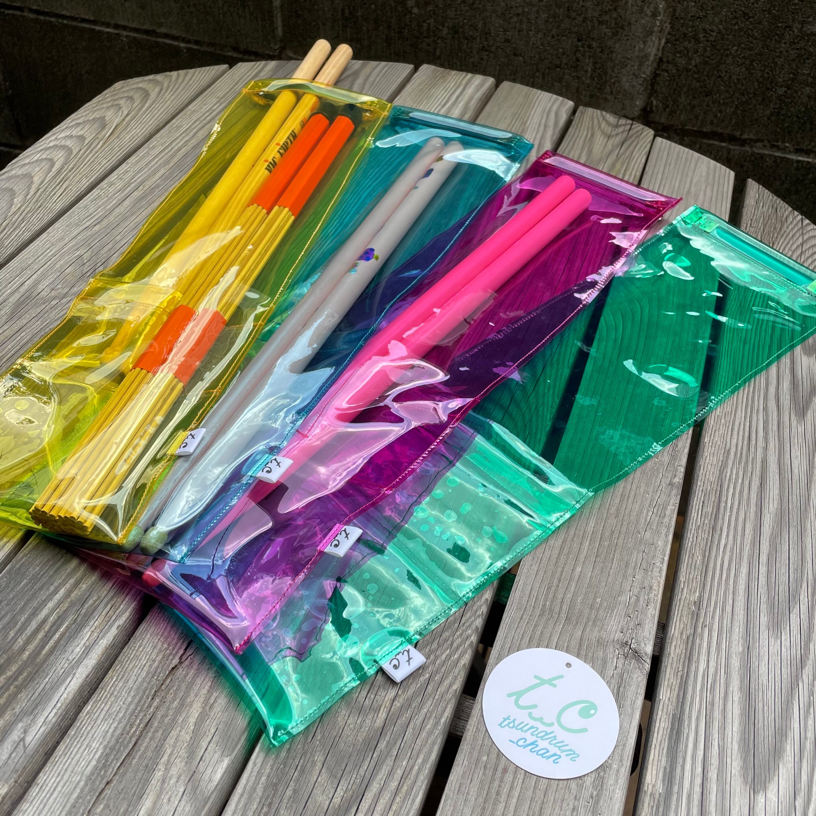 ビジネスバッグに入れてもペンケースの様にスッキリおさまり、フロアタムにぶら下げればちゃんとスティックが取り出せる。そして何より、カバンからチラリと覗いてもかわいいデザインが魅力です。