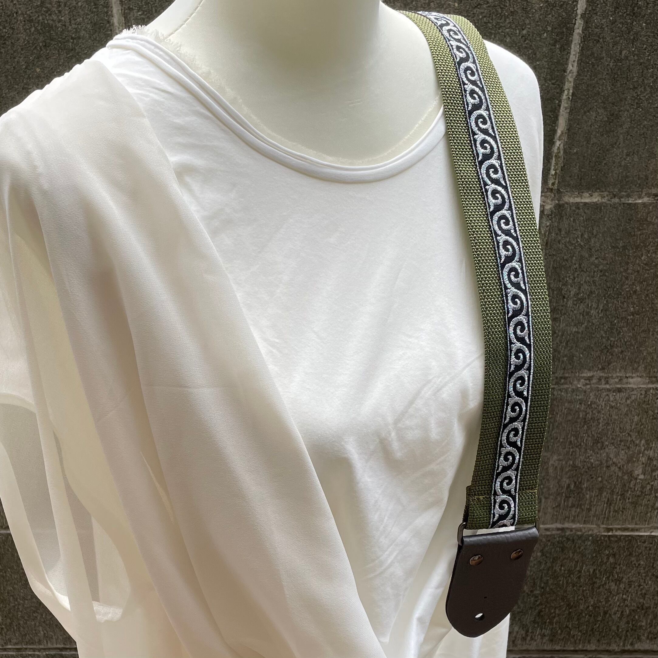 オリエンタルなのに馴染みのいい色使いなので、どんな色のTシャツとも素肌とも似合ってくれ、あなたの自慢のギターやベースをグッと引き立たせてくれるはずです!