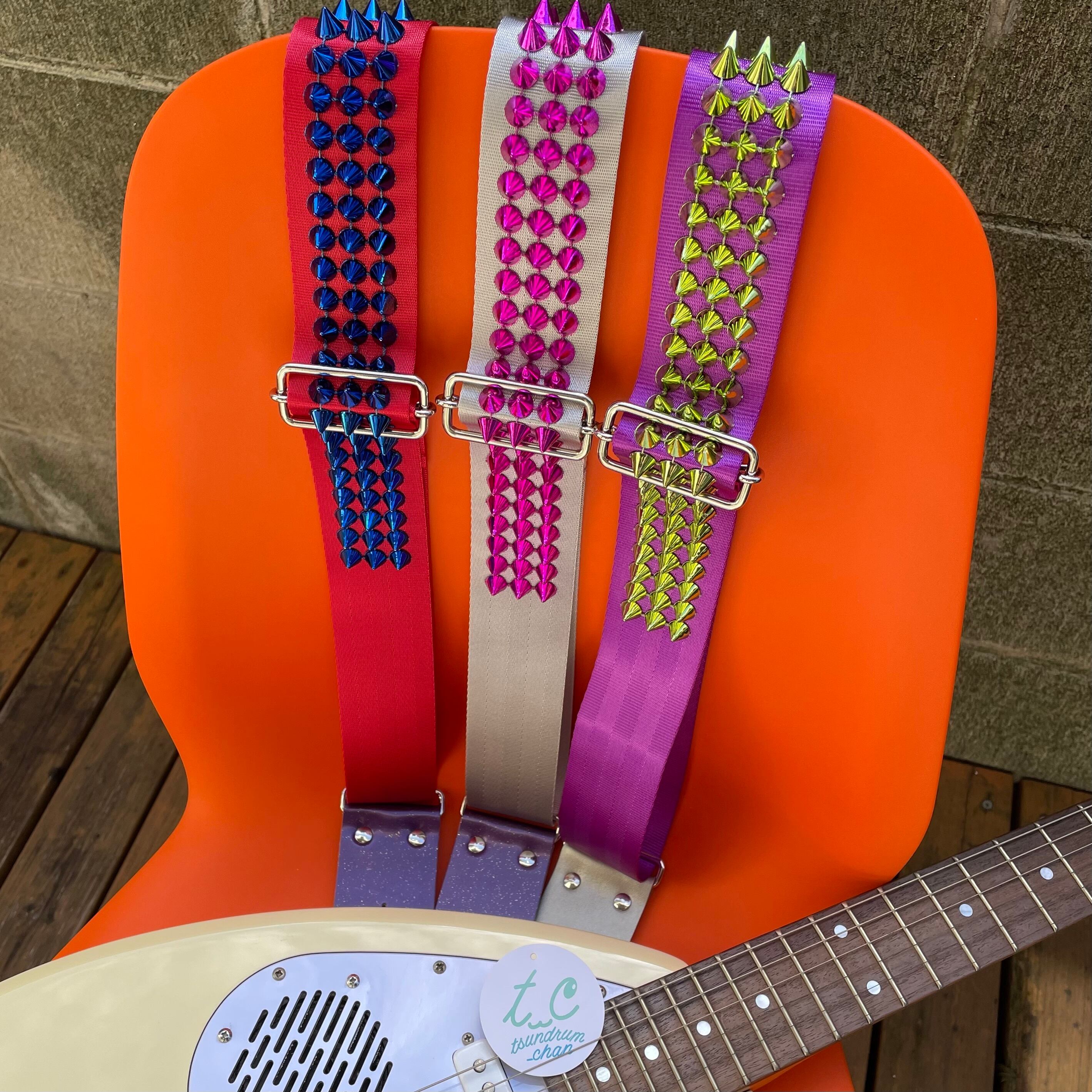 すべての怒れるバンドマン・バンド女子に捧ぐ!(もちろんそれ以外の方にも!)カラフルでゴリゴリなスタッズが輝くギターストラップがさらにド派手になって登場!