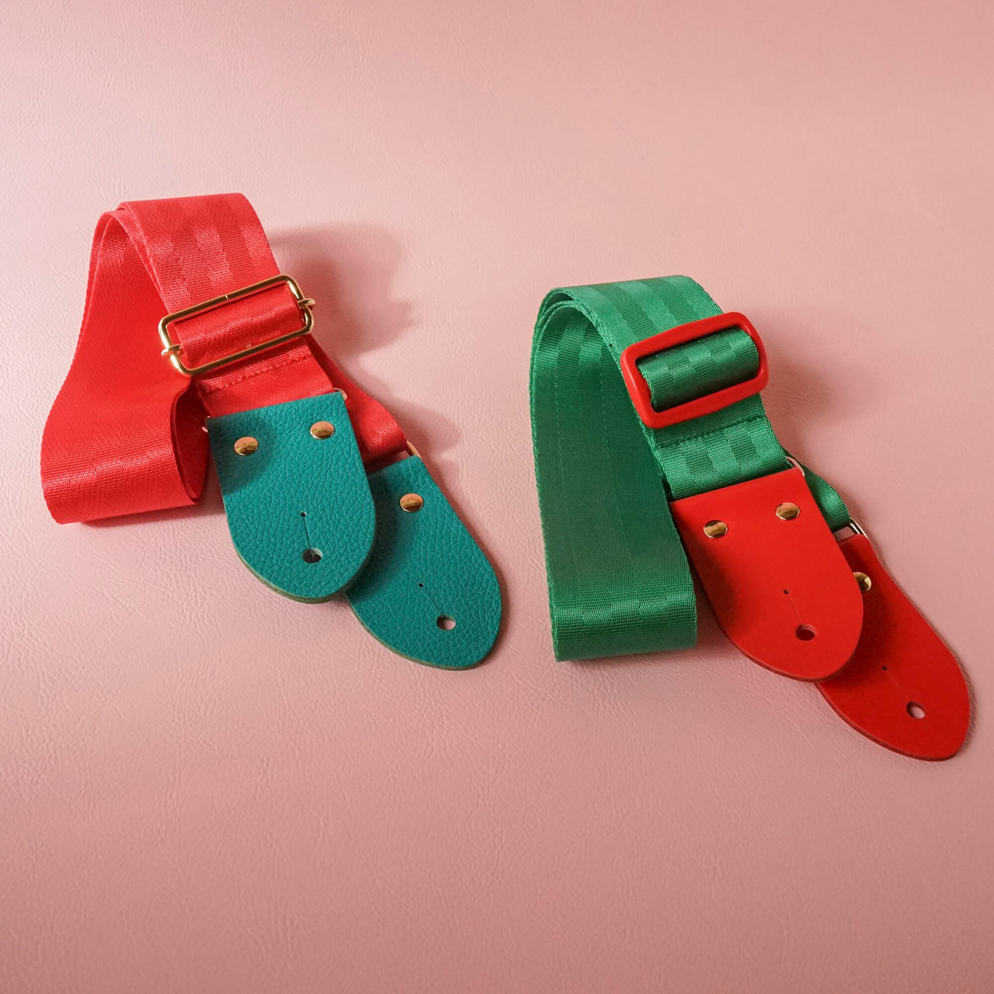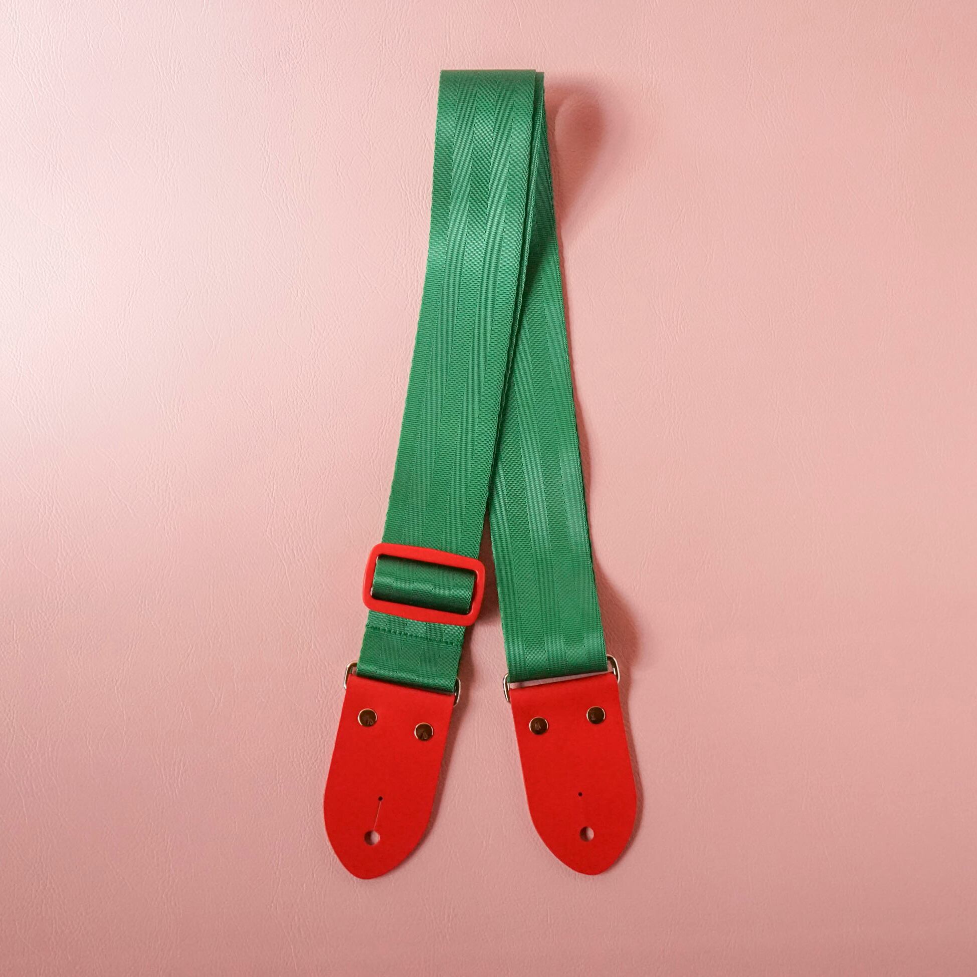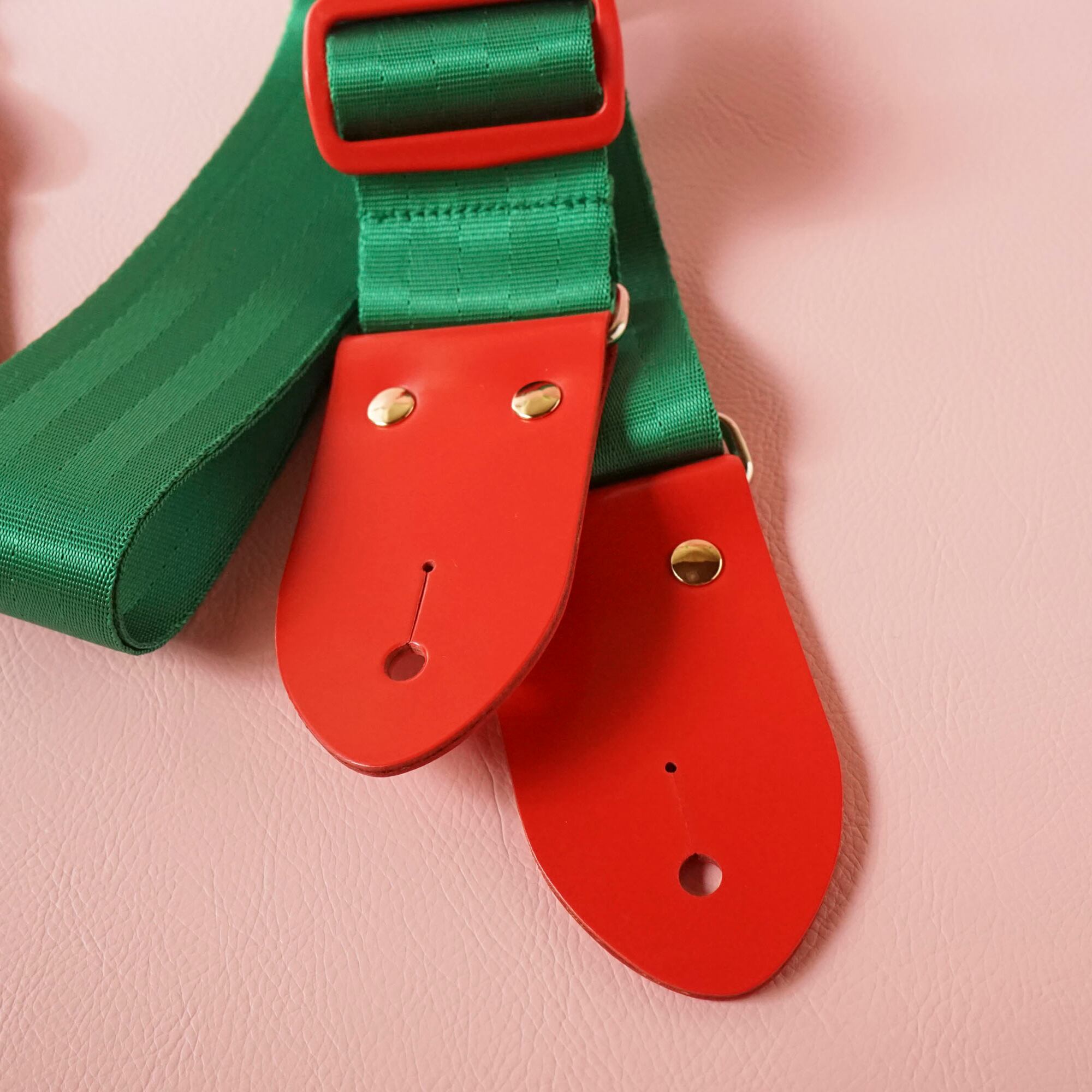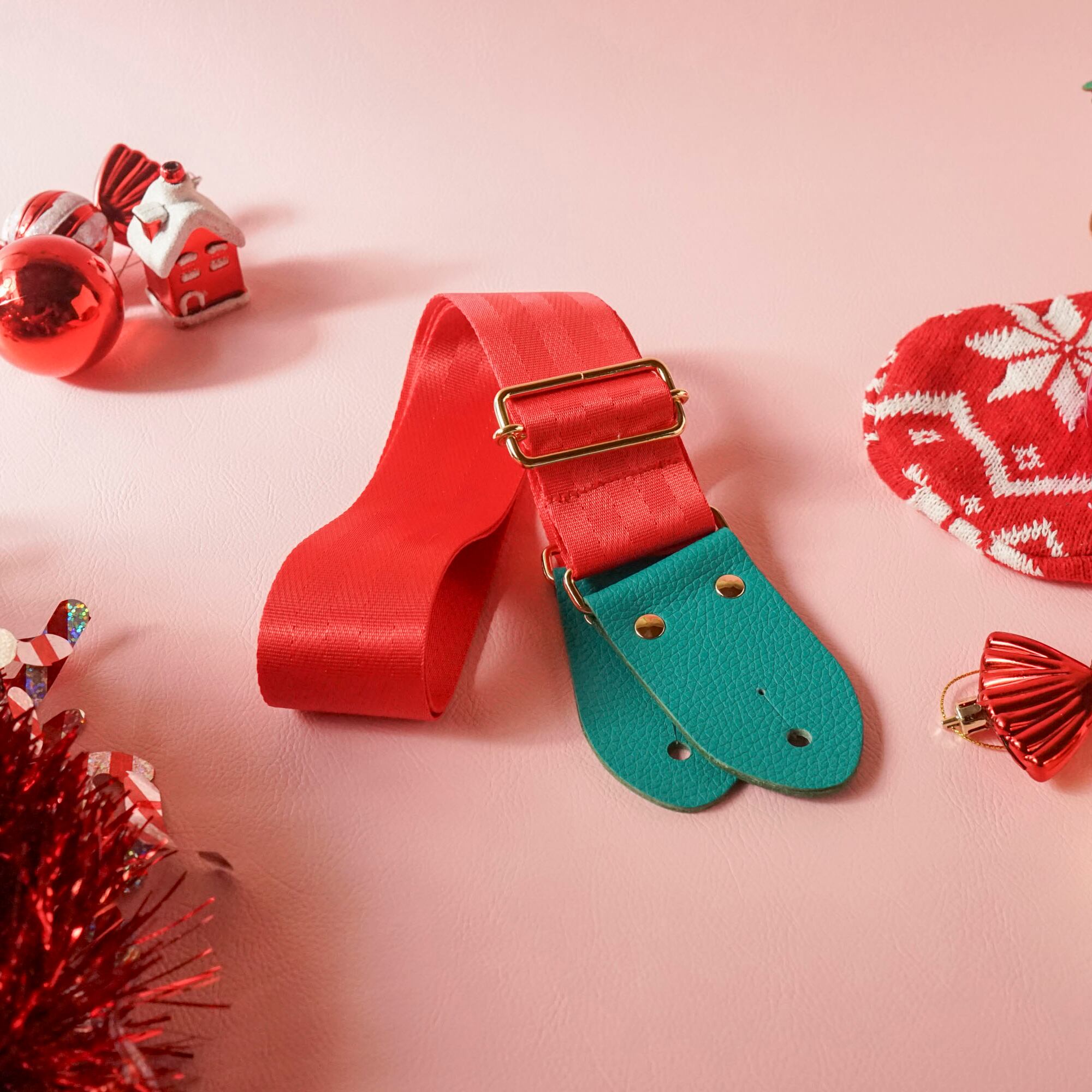 カラフルシートベルトギターストラップを、この季節ならではの赤×緑でポップに大人かわいく仕上げた、「クリスマスカラーシートベルトギターストラップ」登場です!