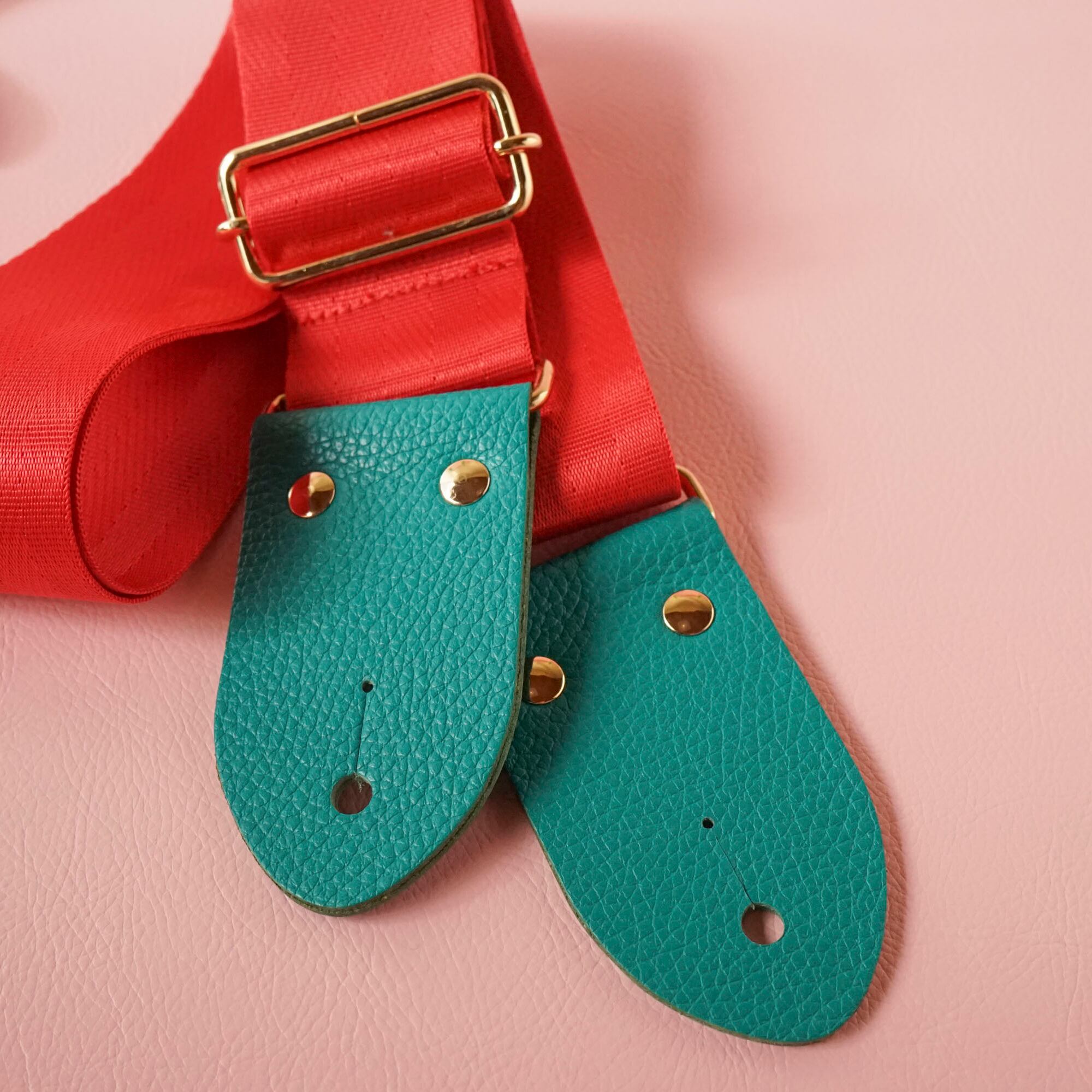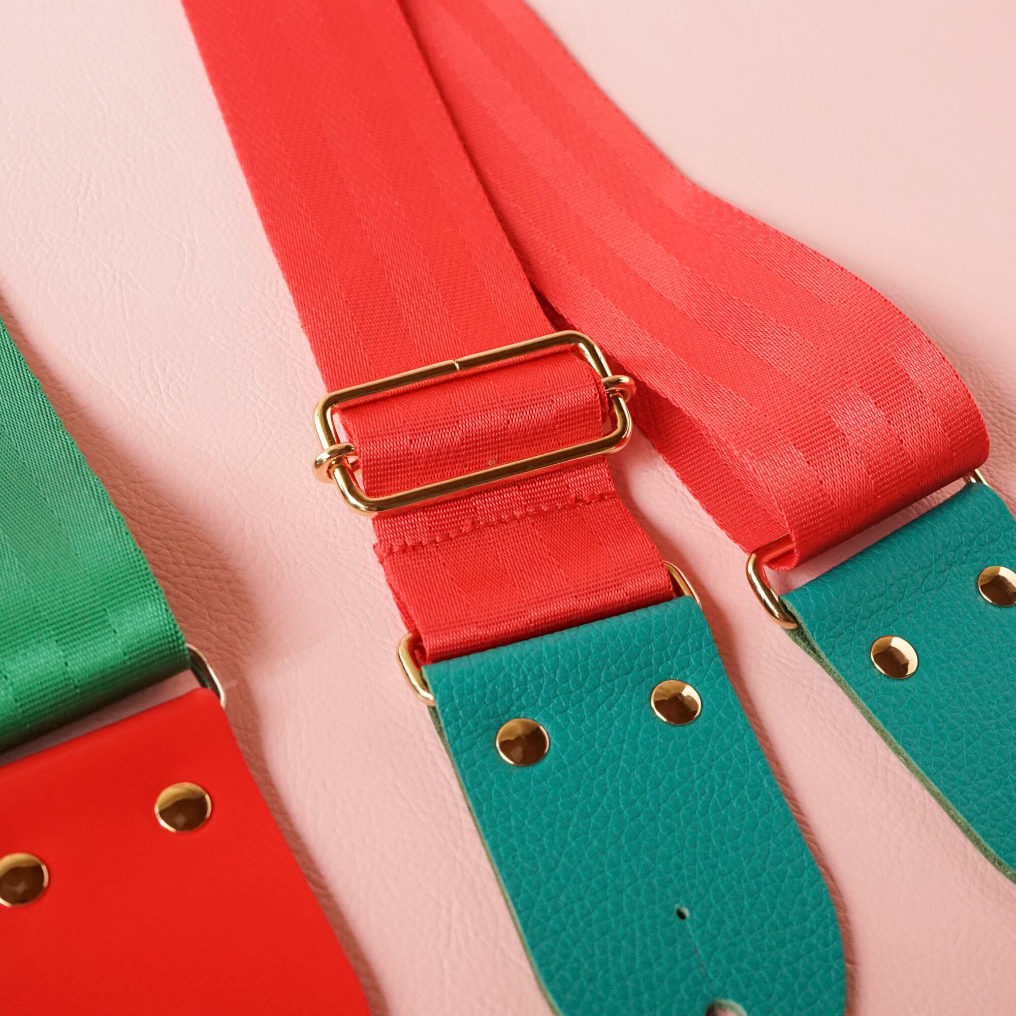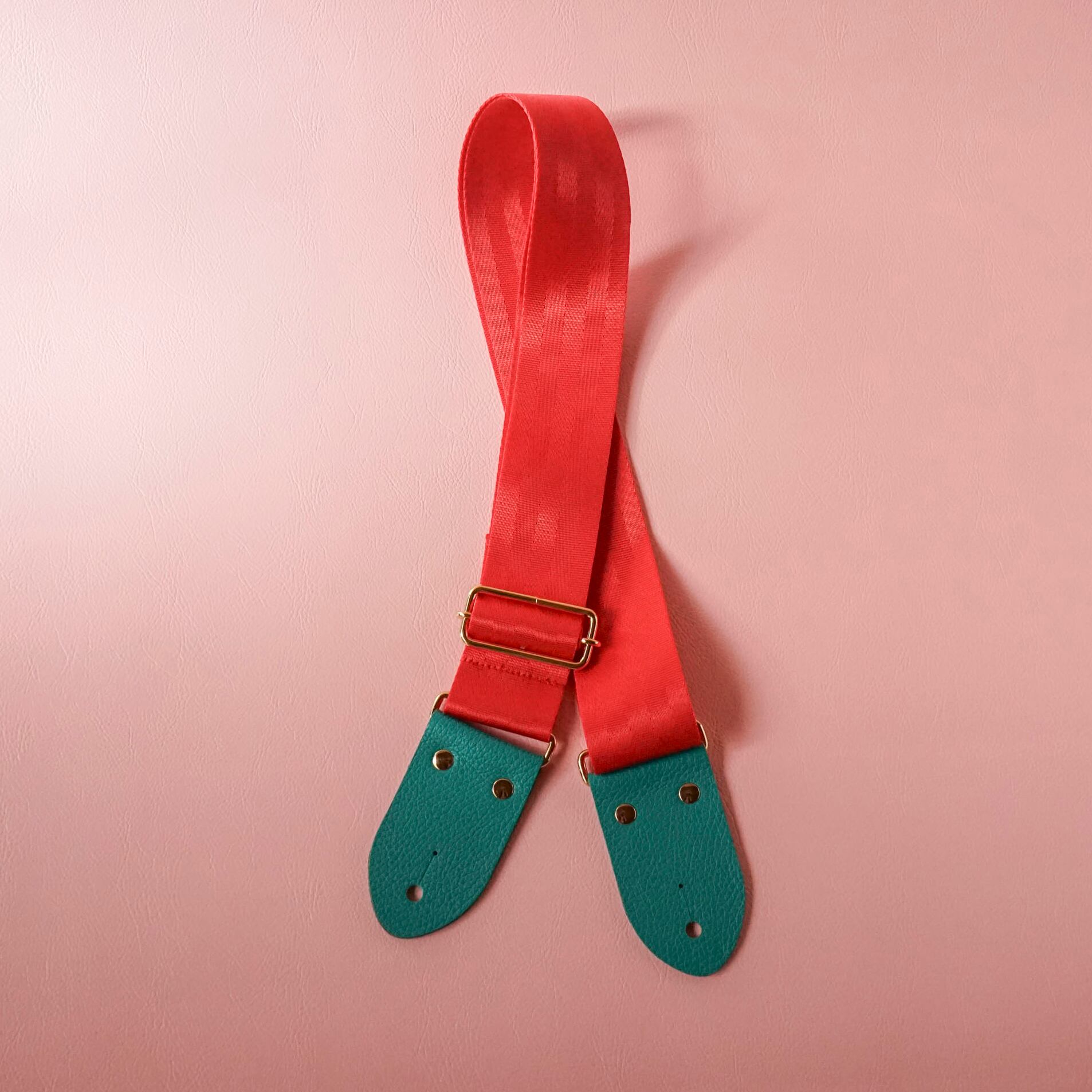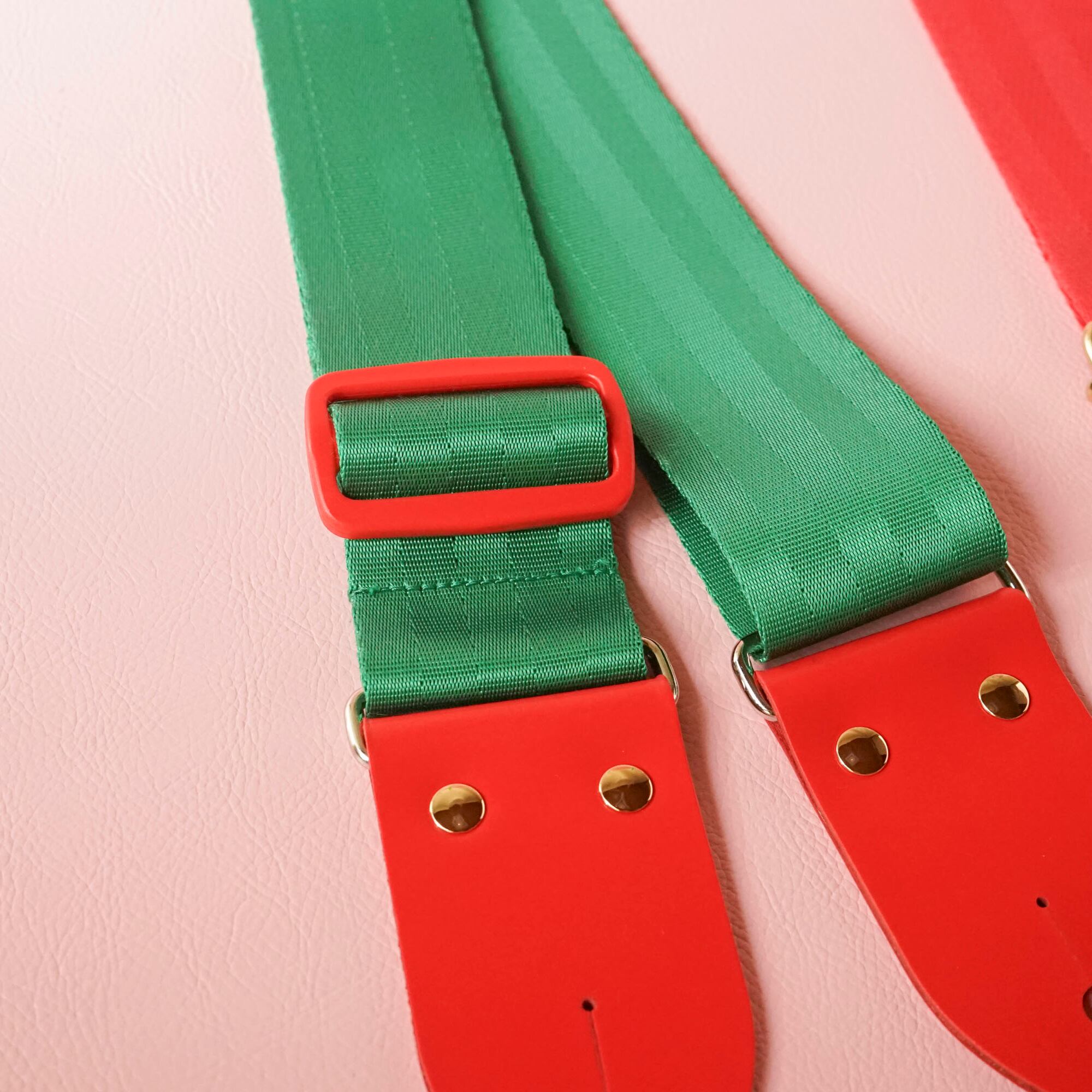カラフルシートベルトギターストラップを、この季節ならではの赤×緑でポップに大人かわいく仕上げた、「クリスマスカラーシートベルトギターストラップ」登場です!