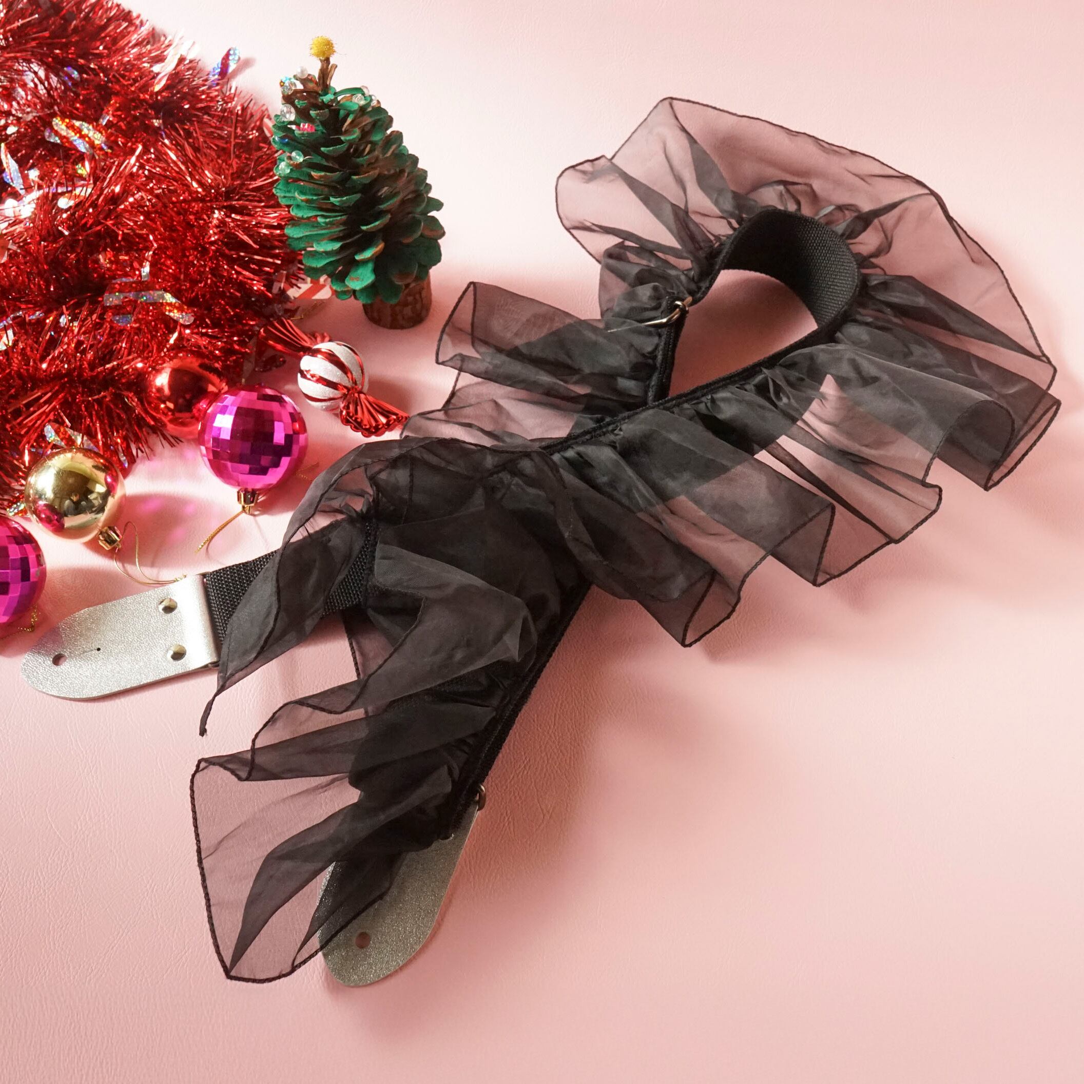 弦楽器を弾かない方には同デザインの「黒フリルショルダーストラップ」もございます。