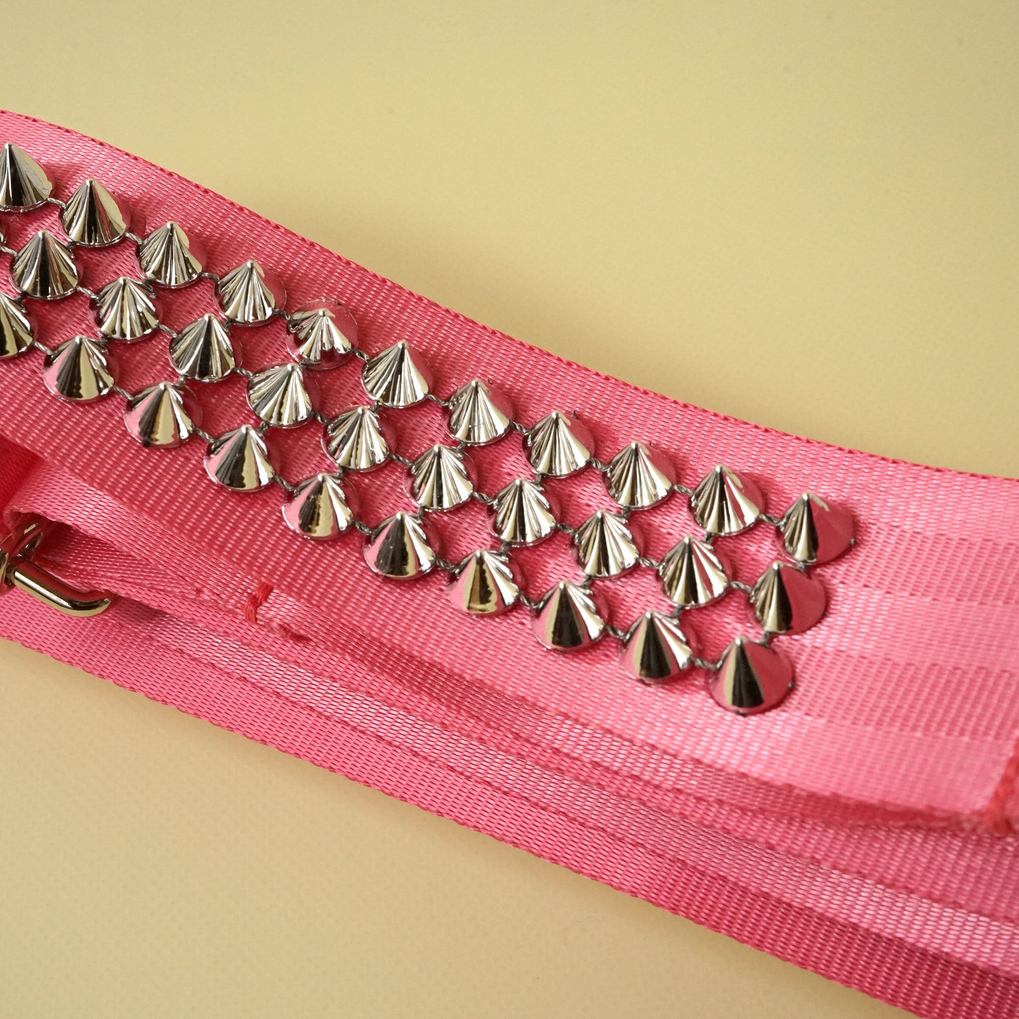 ベースはしなやかなシートベルト素材なので、スタッズ部分の肌あたりも見た目ほど硬くは感じません。(作者にはそう感じました!)