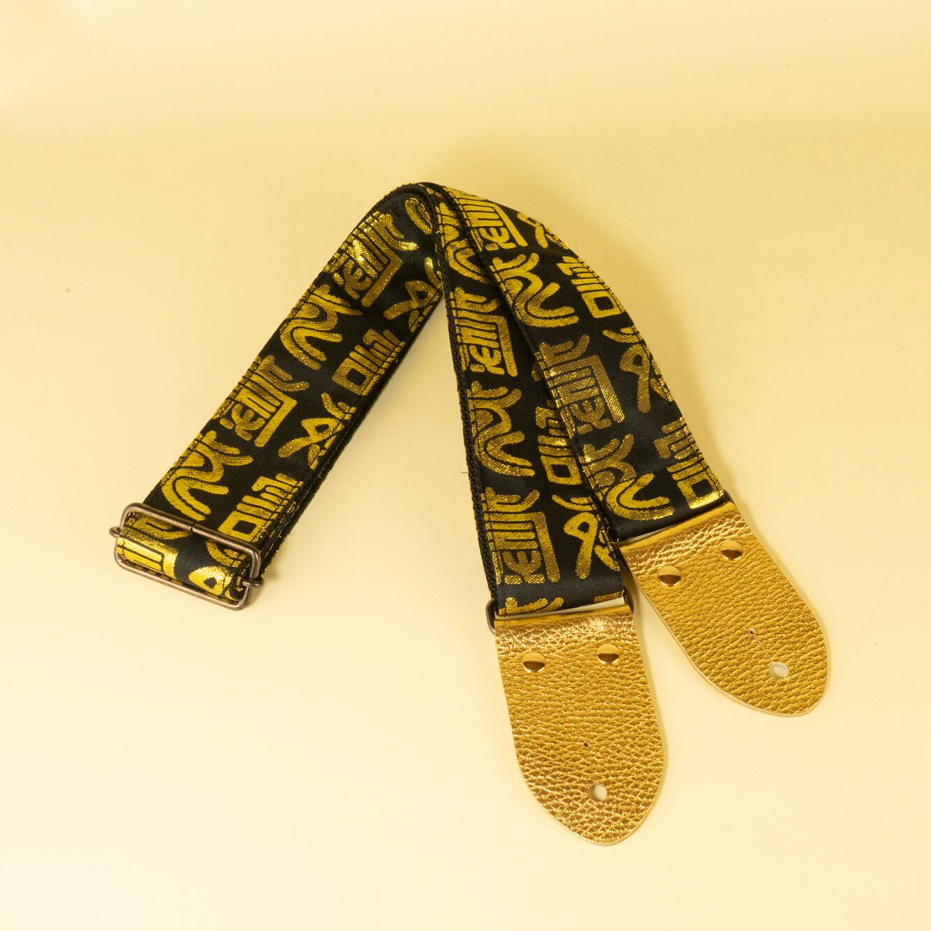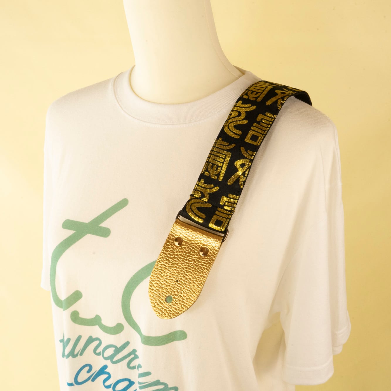 usedの着物帯を裁断しギターストラップにリメイクした世界に一つだけの『obiギターストラップ』シリーズに、様々な字体の「寿」が並ぶ、めでた過ぎる「ロッツオブ寿」デザインが登場!